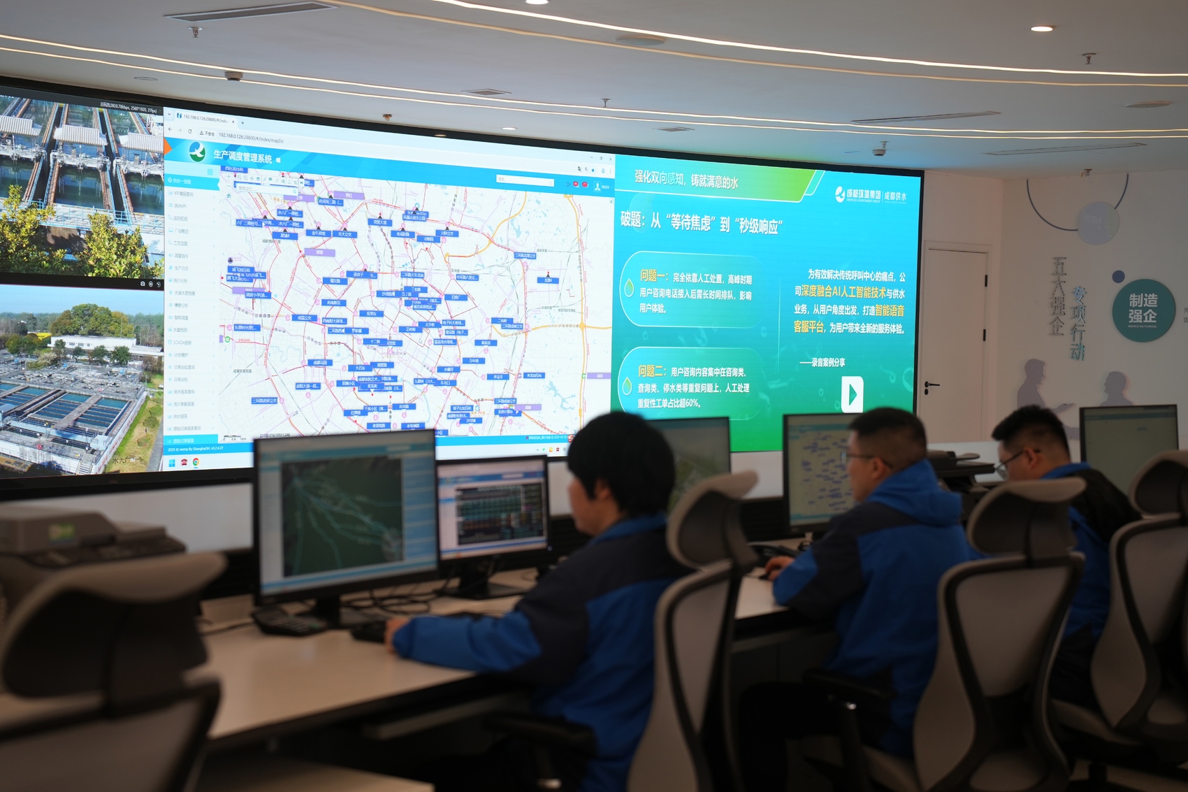 从水质检测到供水排水,一套智慧水网系统筑牢超大城市的用水安全。在成都自来水有限责任公司的调度中心,“智慧水务系统”大屏上,一串串数据流实时跳动:19个布设在上游来水处的水质监测点,24小时全天候监控水质,可提前8至20小时预警水质变化;系统后台融合多种算法,预测未来水量需求,每小时自动迭代修正,确保与实际需求匹配;此外,智能调度模型通过感知供水管网压力,智能分配各供水节点水量……