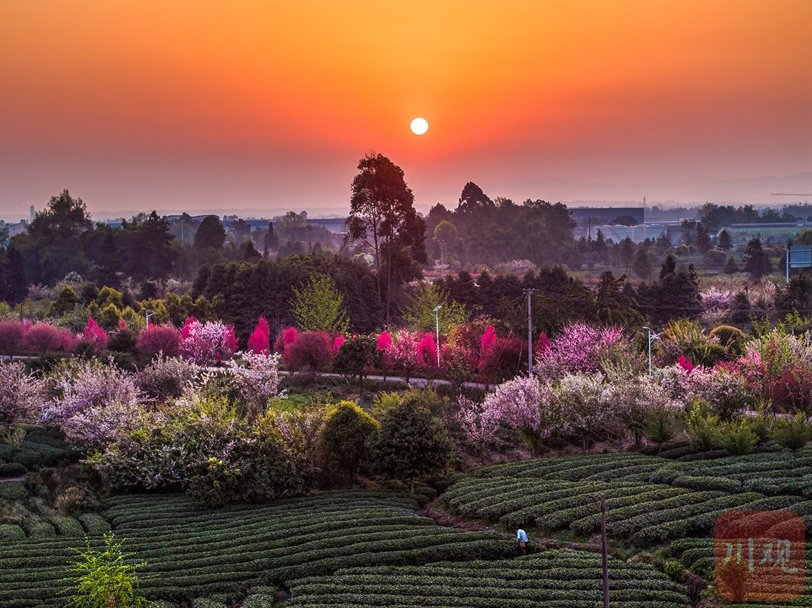 3月27日,雅安市名山区的中国至美茶园绿道沿线一片生机。茶树泛绿,百花竞放,茶农在茶园劳作。