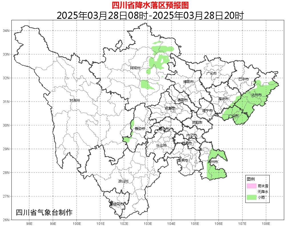 未来三天:受强冷空气影响,盆地气温将继续下降,日最高气温将降至12~15℃;28日盆地东北部有阵雨或雷雨,局部中雨,29-30日盆地有分散阵雨;27日晚盆地普遍有4~6级偏北风,北部中部部分地方风力可达7~8级,局部9级。川西高原北部多云间阴有分散阵雪(雨),川西高原南部和攀西地区晴间多云,森林火险气象风险等级较高,需加强火源管理和森林防火工作。
