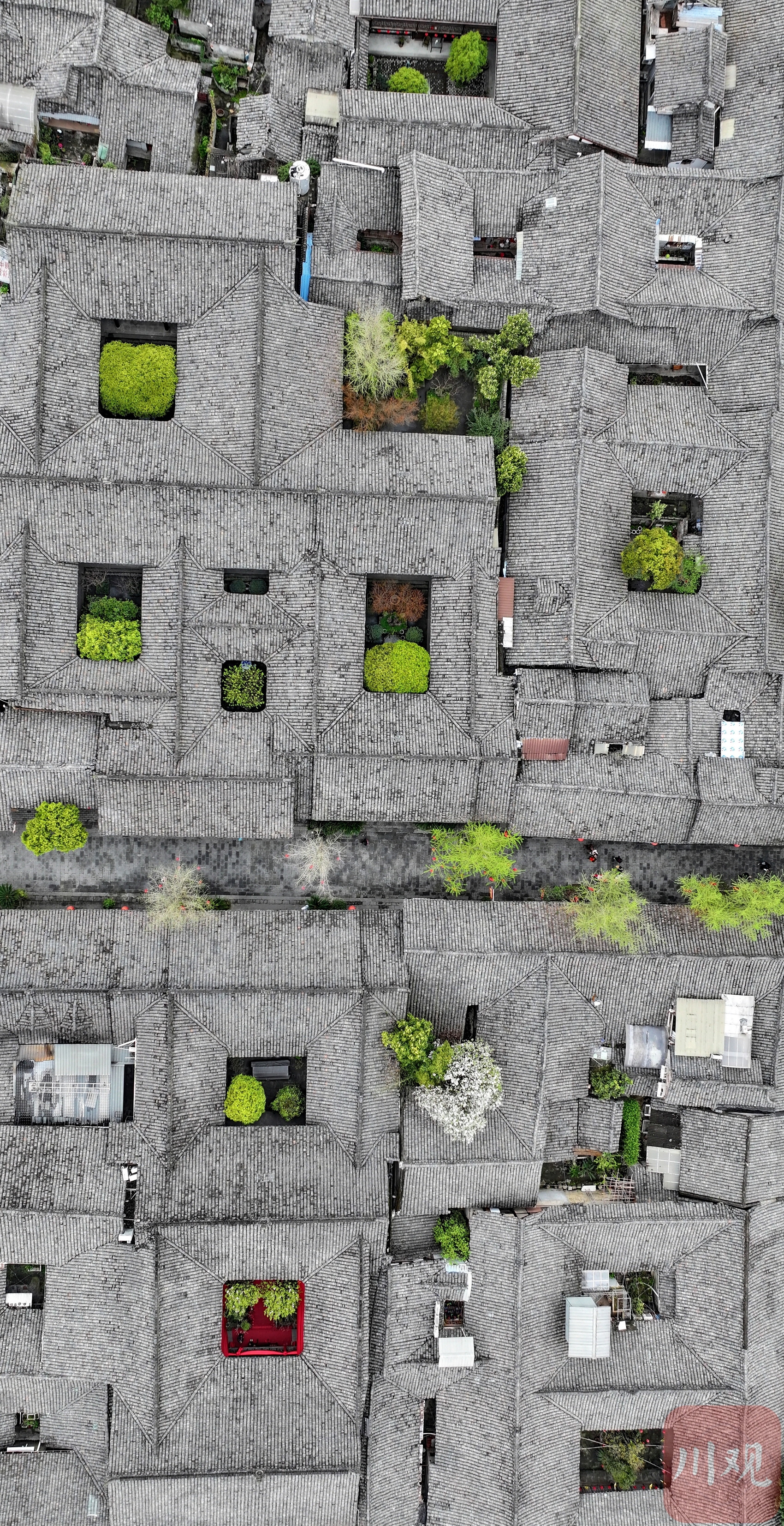 2025年3月30日,在四川省阆中古城,街道上和古院落天井中的树木吐出新绿,形成了春天特有的景致。