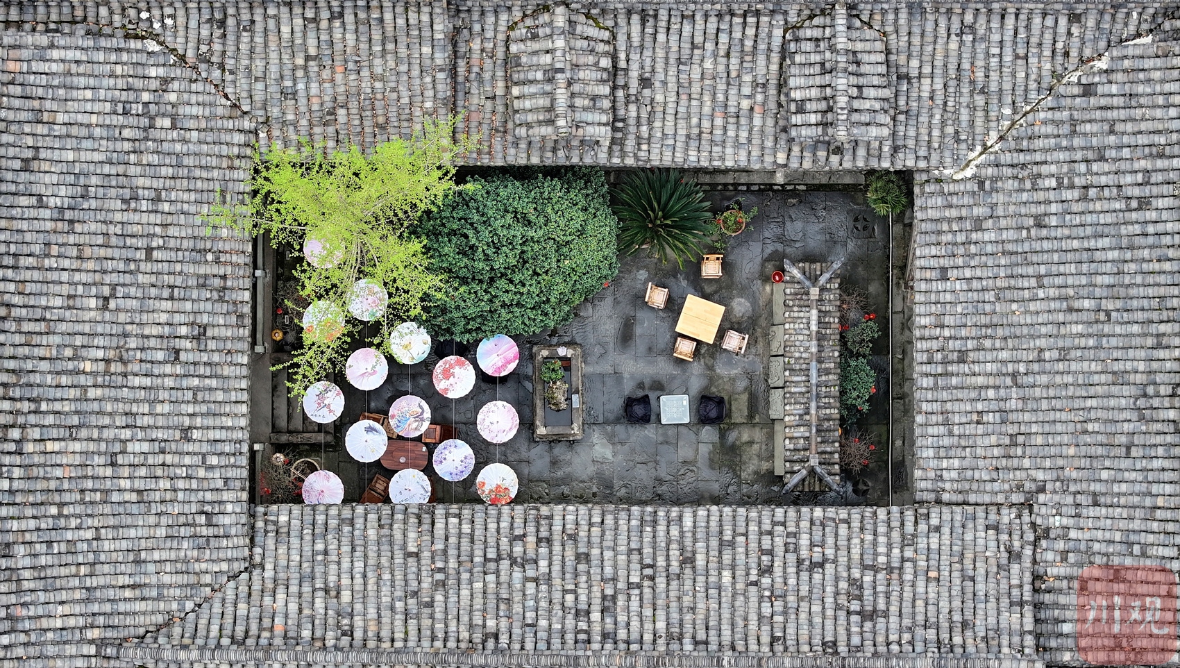 2025年3月29日,四川省阆中古城古院落天井中的树木吐出新绿。