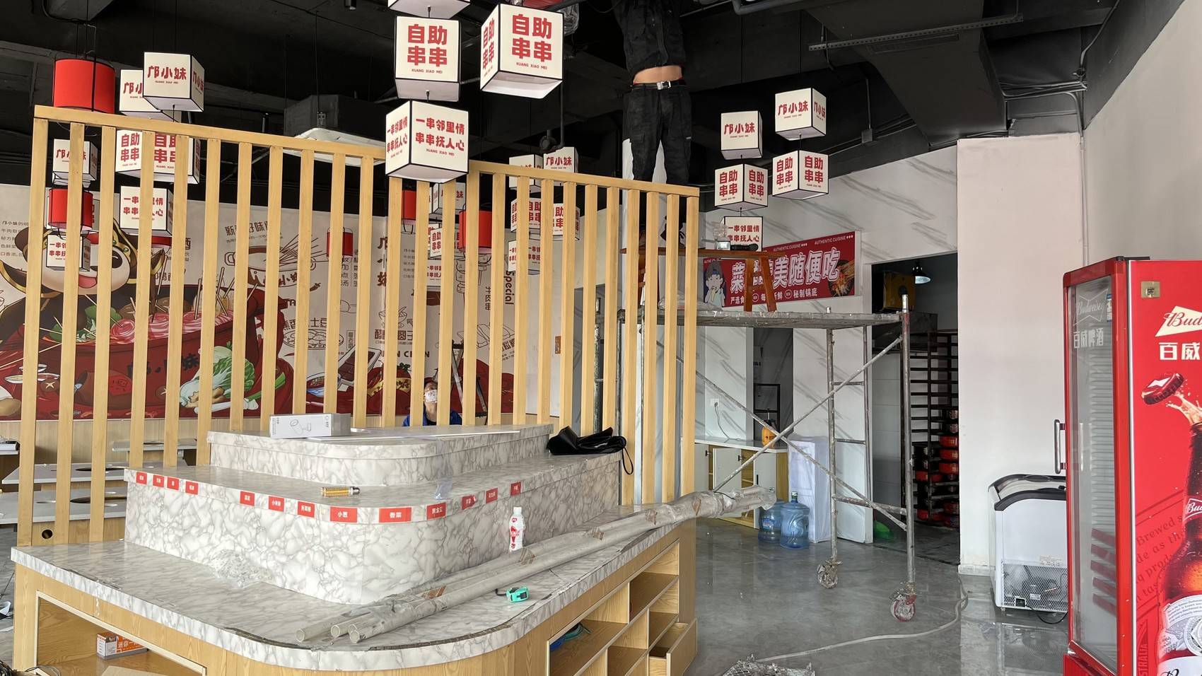 位于资阳市雁江区的邝小妹自助串串店(更名前为醉串串自助餐饮店)遭遇火灾后重新装修。