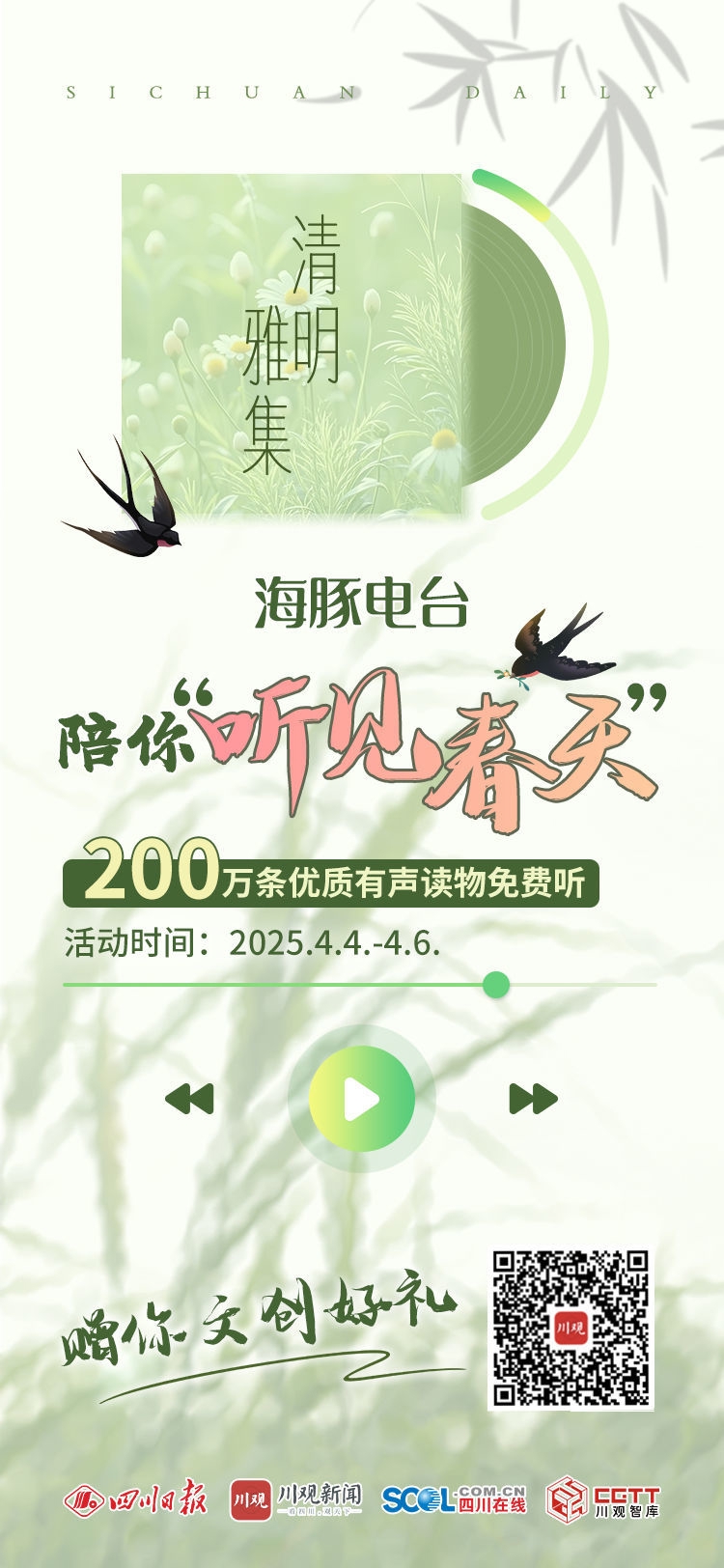 用户在海豚电台每日分别收听“焦点书目”、“川观早8点”、“推荐书目”各满3分钟,即可获得1次抽奖机会,可抽取川观新闻限定文创好礼或川观新闻积分奖励。