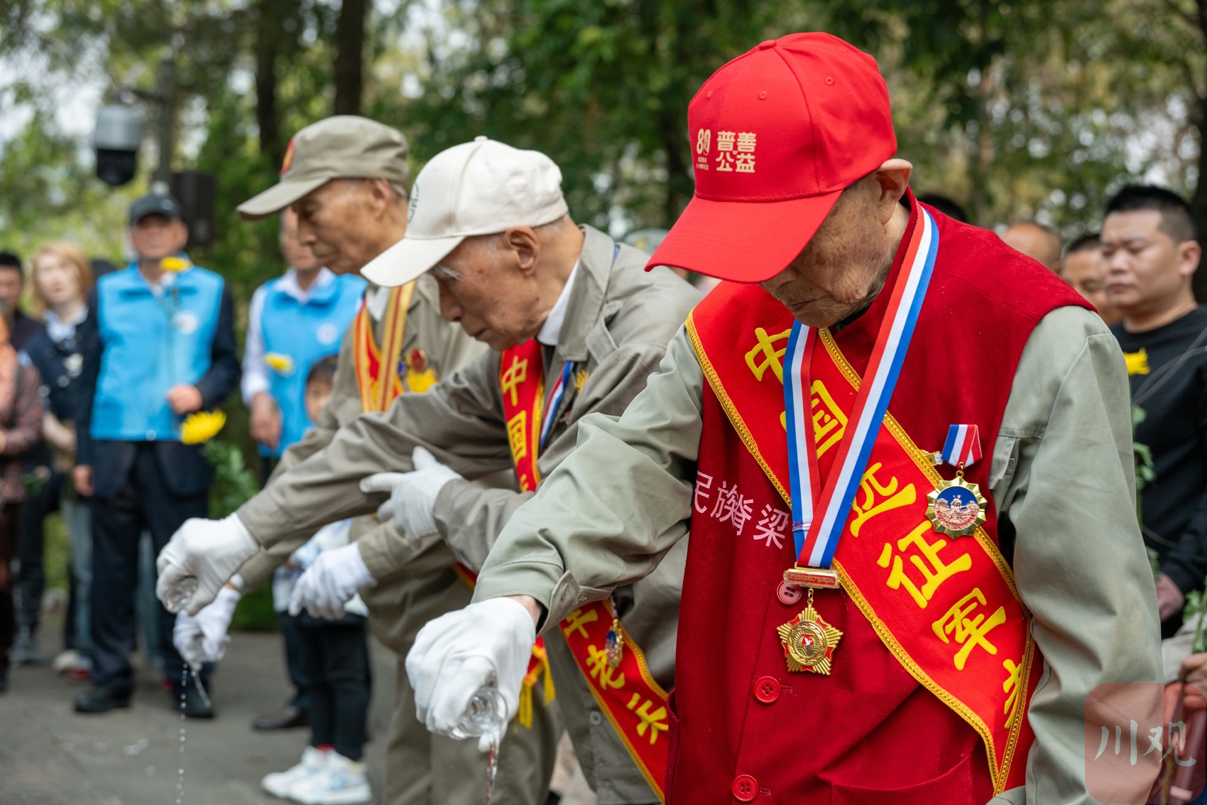 4月4日,远征军老兵在国殇墓园向阵亡将士敬酒 蒋京洲/摄