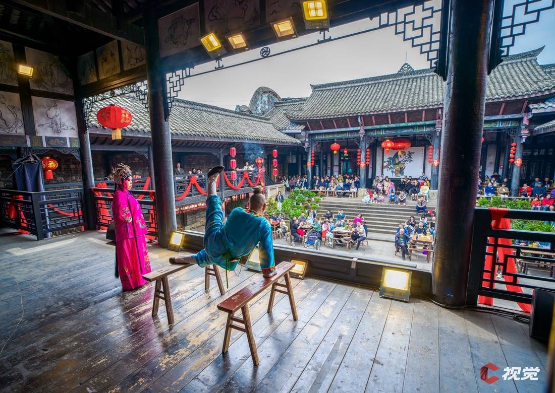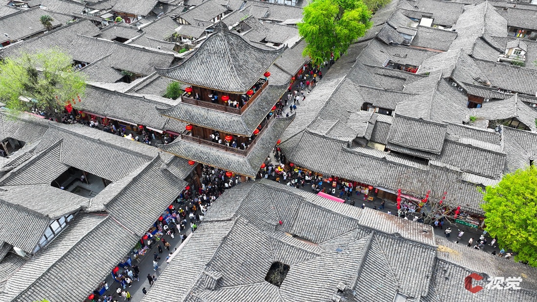 4月4日,巴中市恩阳古镇游客如织,大家在这里逛古街、看川剧,乐在其中。(C视觉 付海旭 摄)