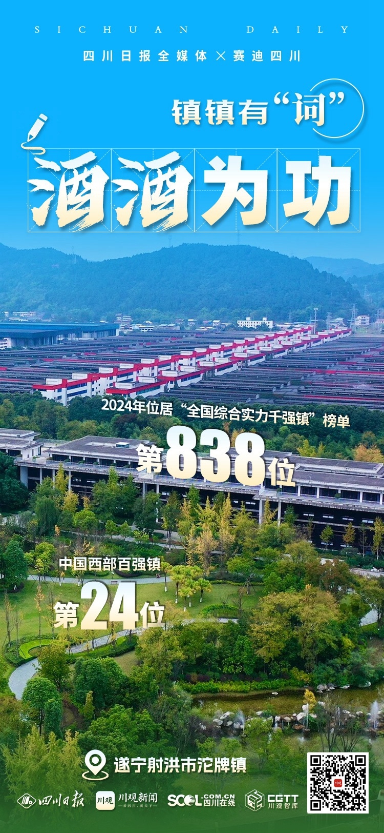 沱牌镇位于中国白酒之乡射洪的核心产区,幅员面积91.17平方公里,“川酒六朵金花”之一的舍得,诞生于此。2024年,沱牌镇有规上工业企业14家。曾获评全国500家小城镇建设试点镇、第二批全国发展改革试点镇、全国创建文明镇工作先进镇、全国文明村镇、四川省首批“省级百强中心镇”等称号。