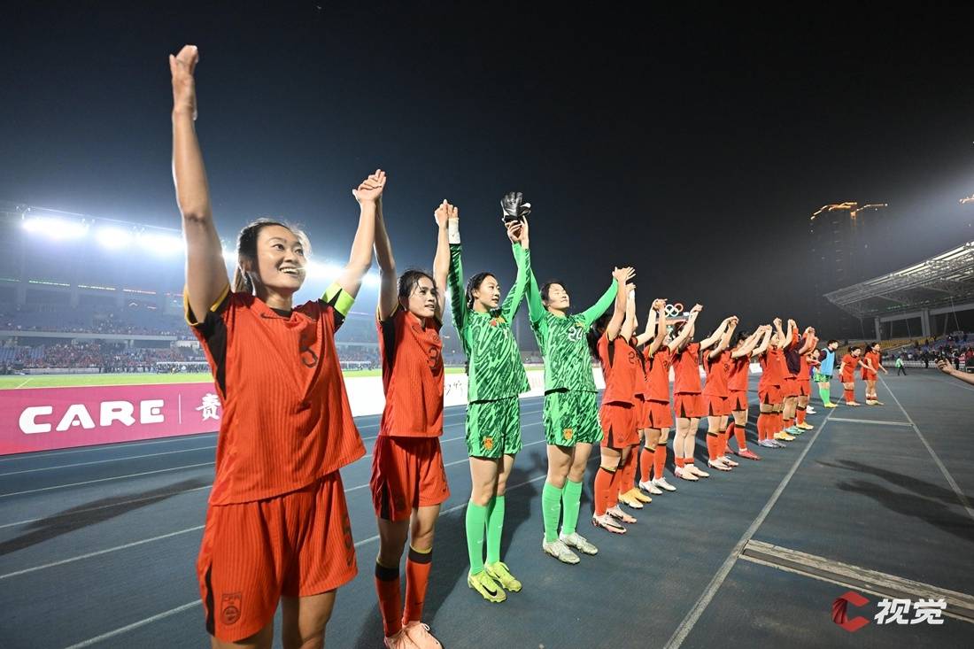 中国女足夺冠后向观众挥手示意。