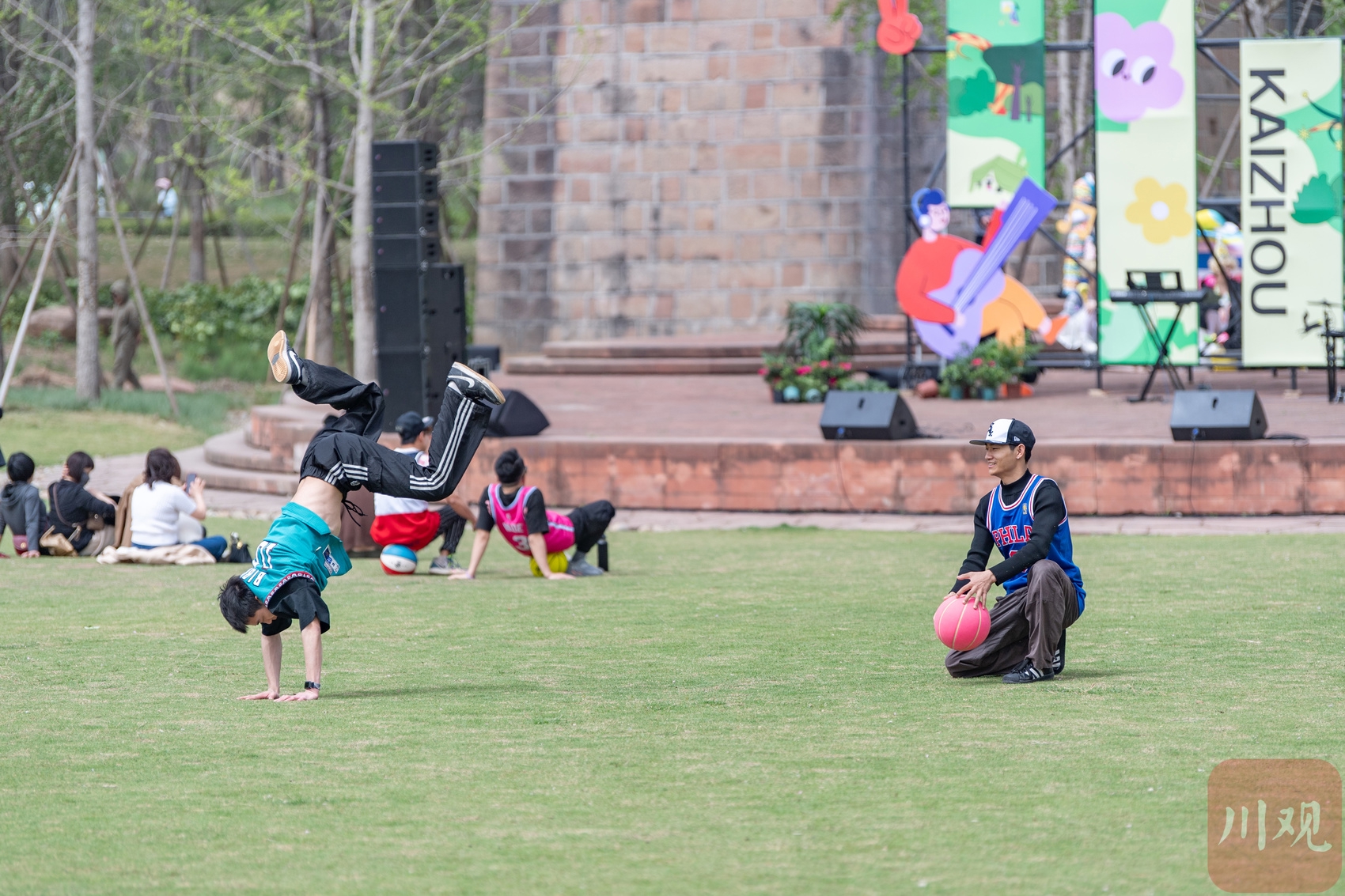 4月12日,短暂降雨后,德阳中江县天气放晴。当地民居聚集在凯州新城中央音乐山谷,畅享音乐与自然融合时光。