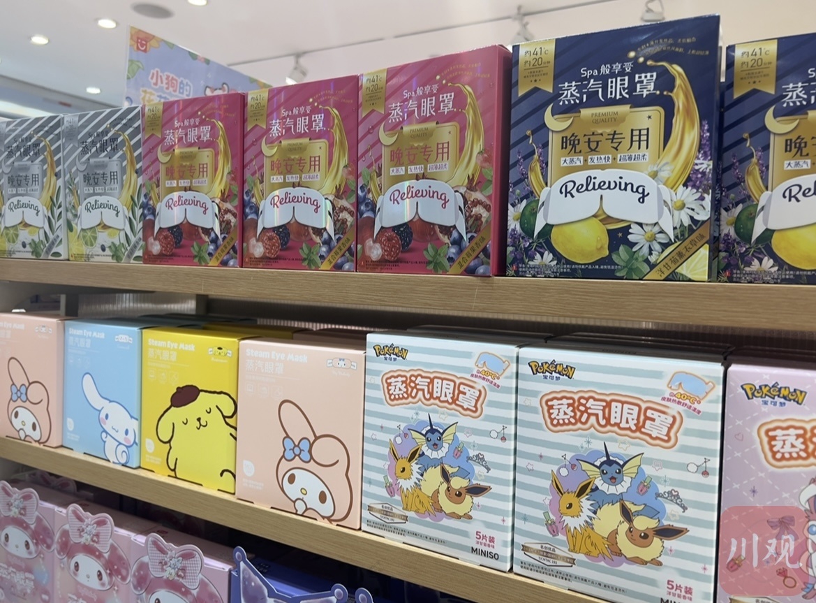 “目前店内售卖的‘睡眠遮光眼罩’约有15款产品,包括深受年轻消费者喜爱的迪士尼、蜡笔小新等多种IP联名款。”名创优品相关负责人告诉记者,2025年以来,眼罩细类取得不错的销售业绩。