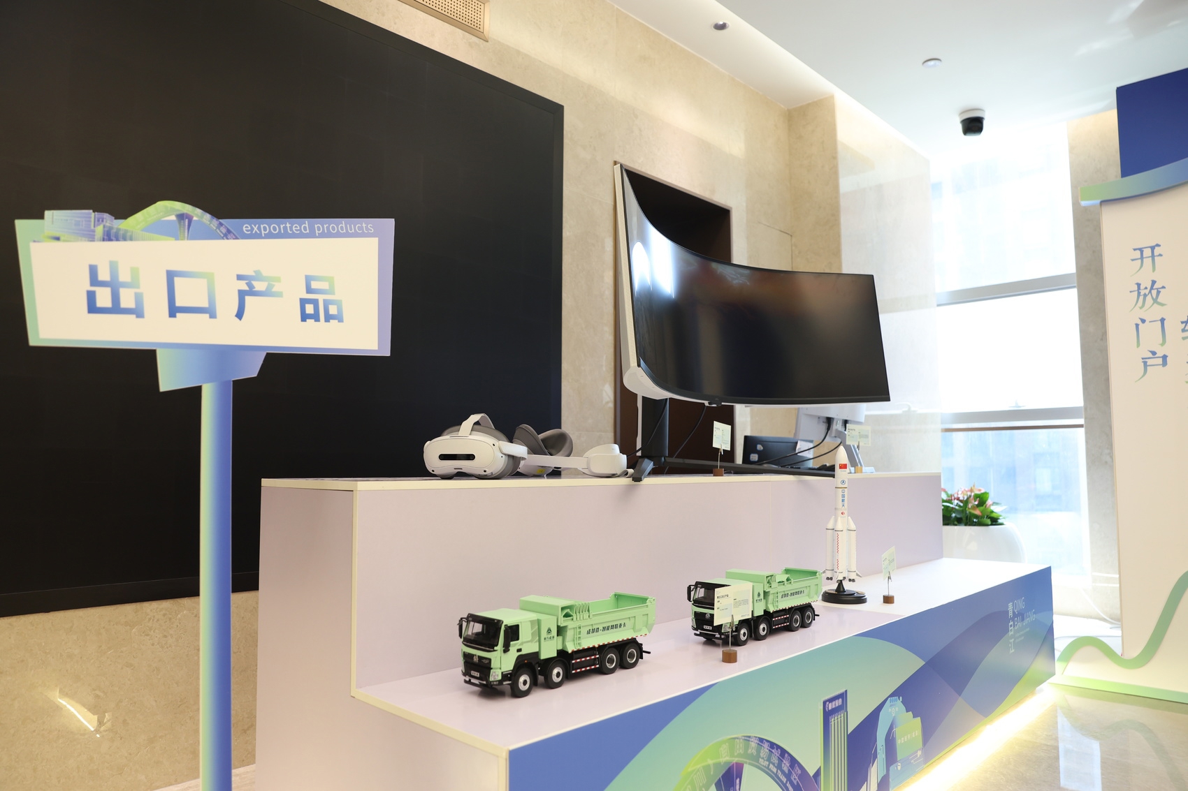 在出口产品展区,摆放着一块“成都造”TCL雷鸟显示屏,以及两辆重汽成商生产的重卡产品模型。数据显示,去年重汽成商销售18500辆商用车,同比增长60%,打造出一系列具有国际竞争力的“成都造”品牌,产品出口海外数十个国家和地区。