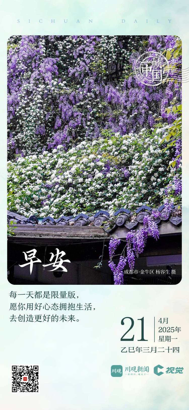 暮春时节,花开蓉城,今天的《一帧中国》,川观新闻带你漫步成都街头,欣赏紫藤与七里香带来的明媚鲜妍。