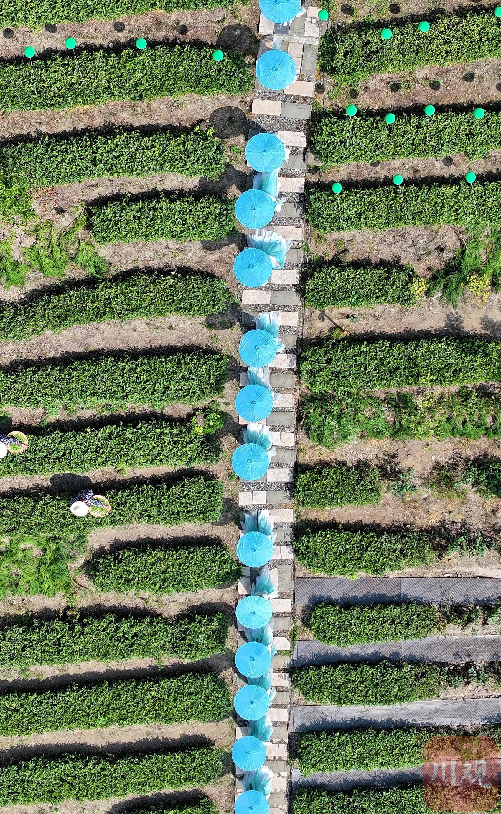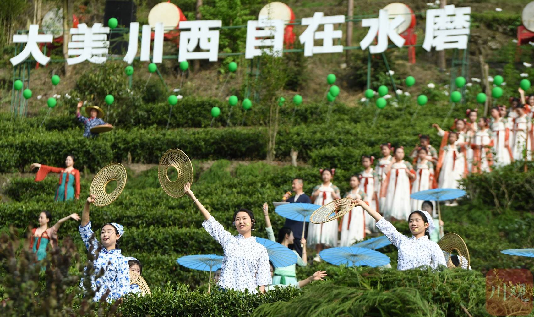 在四川省阿坝州汶川县水磨镇“等风来”茶园,演员正表演节目,茶园变成了“舞台”。