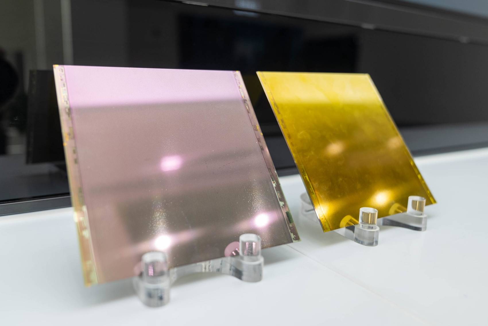 左为布满Micro-LED显示芯片的玻璃基板。黄潇 摄