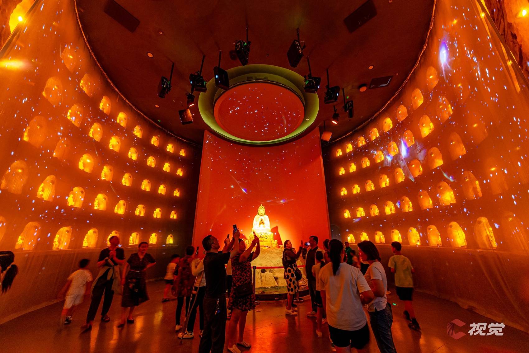 游客正在馆内沉浸式观赏数字化石窟造像。C视觉 张天富 摄
