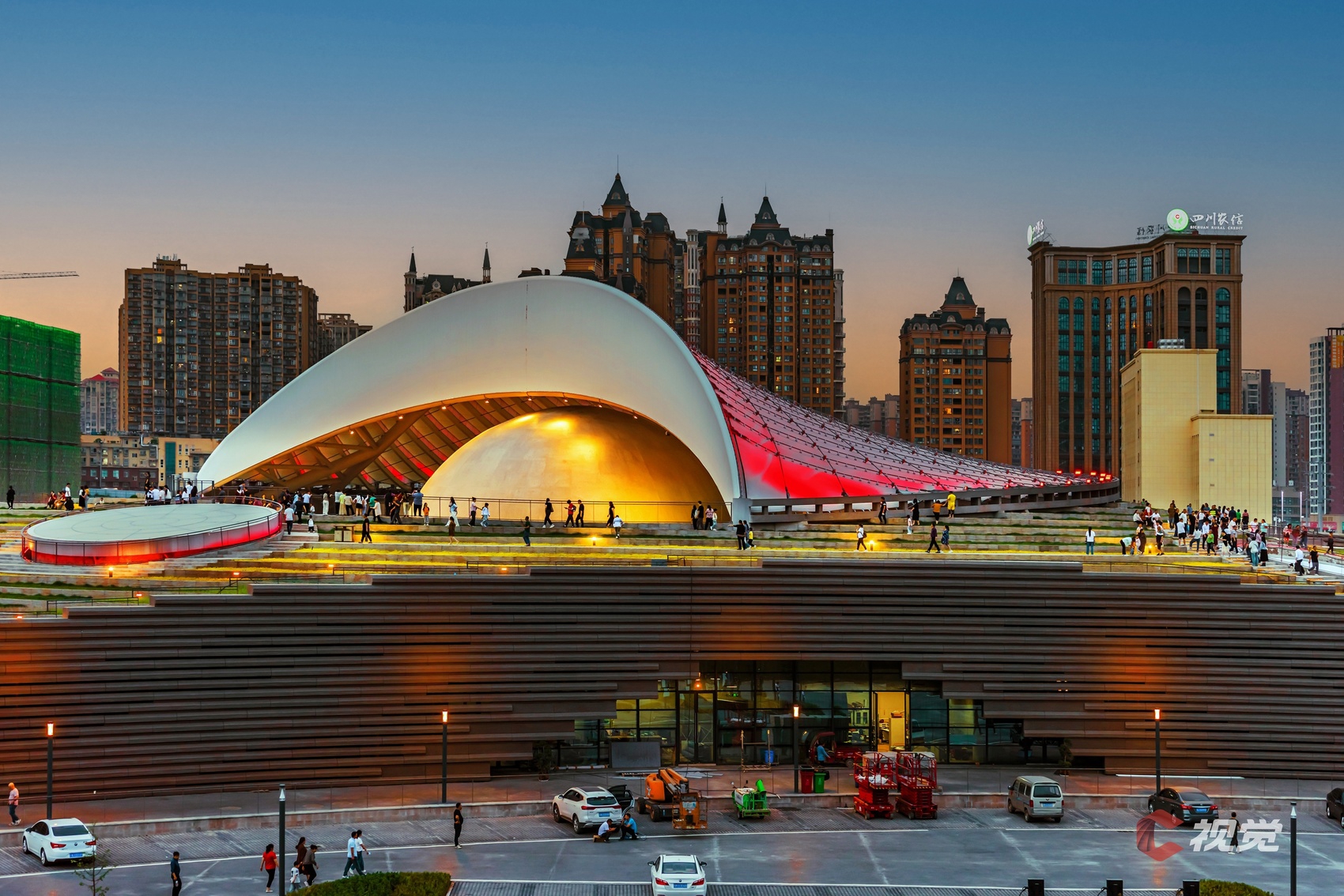 傍晚的灯光秀为石窟数字展示中心再添魅力。C视觉 杨康忠 摄