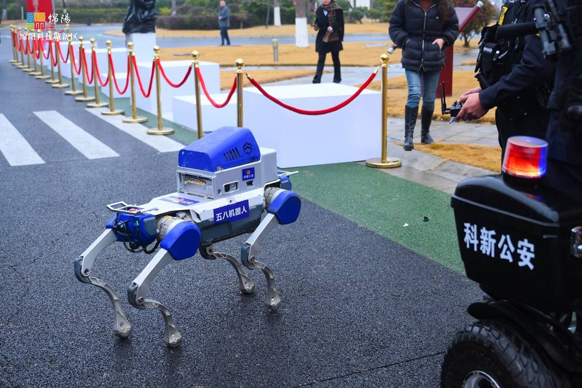 中国兵器装备集团自动化研究所的机器狗正在安防巡逻。