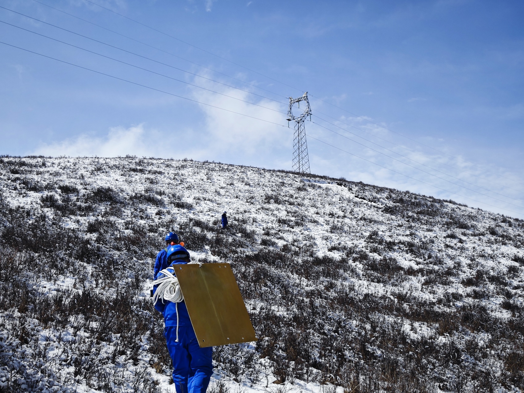 电力工人前往高海拔地带巡查输电线路。国网四川阿坝州电力有限责任公司供图