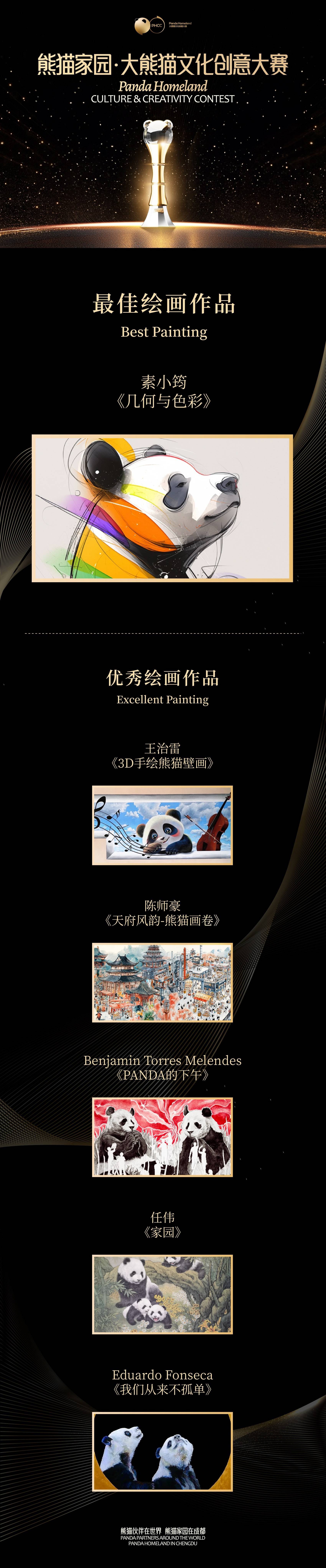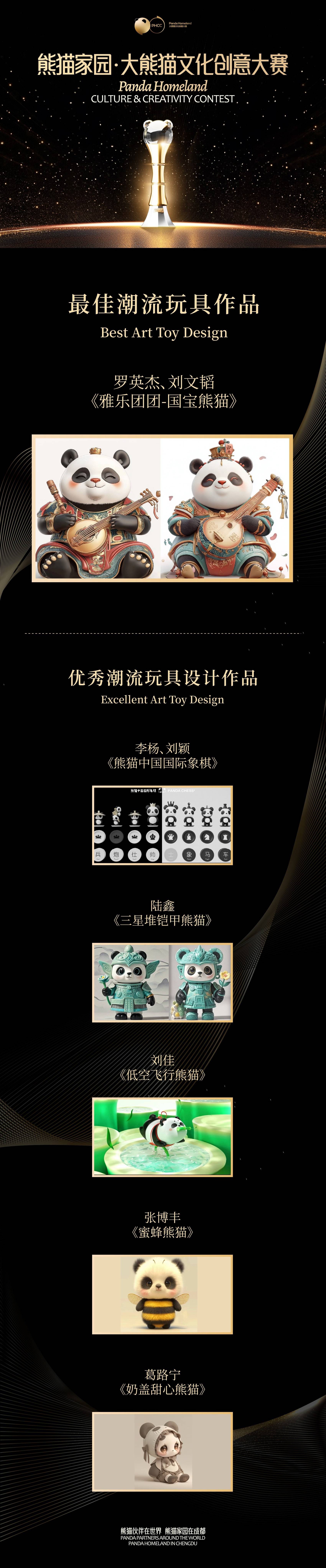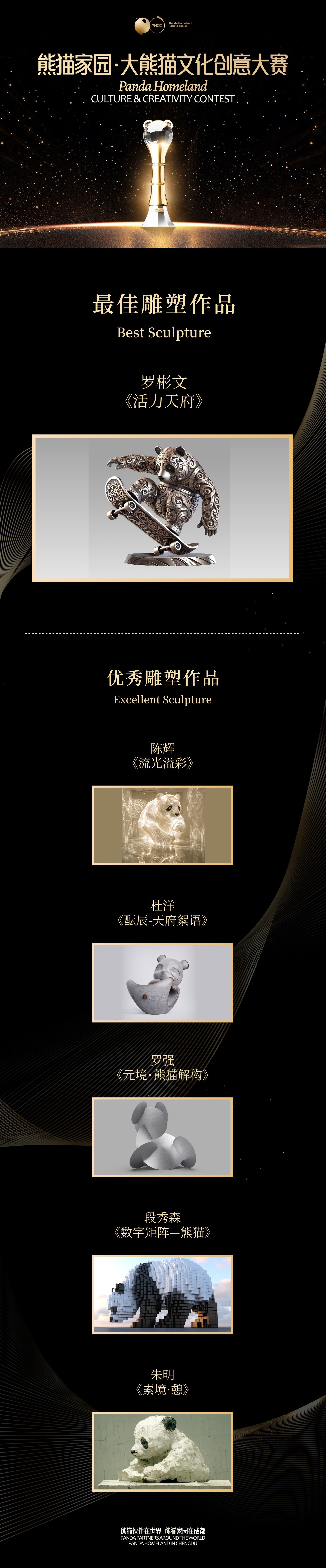 本次大赛以大熊猫这一独特文化符号为主题,设置“最佳雕塑作品”“最佳视觉设计作品”等5大门类最佳作品奖项,以及“最佳人气作品”等三个特别奖项,吸引了好莱坞精英、红点奖得主等优秀从业者同台竞技,共收到来自全球的1.3万余件参赛作品,活动网络总投票数突破616万,充分展示了熊猫文化的吸引力。