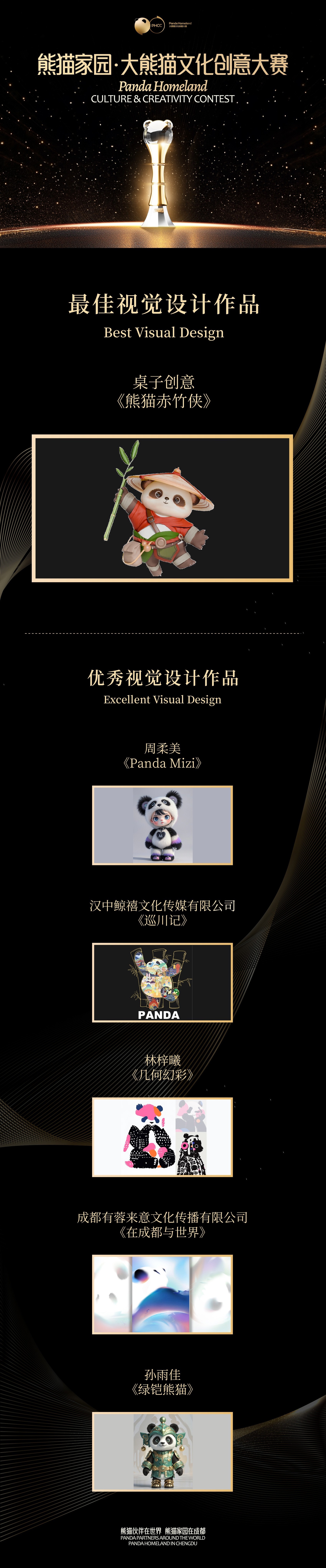 值得一提的是,最佳视觉设计作品《熊猫赤竹侠》的创作者曾参与制作今年最火的动画电影《哪吒之魔童闹海》,在成都可可豆动画历任执行导演、制片统筹等职位,拥有国际化视野和近十年创意创作经验。