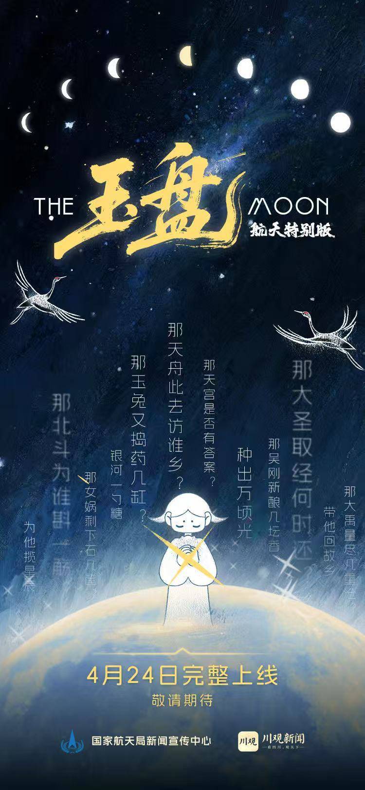 值得注意的是,本次《玉盘·航天特别版》歌曲MV由国家航天局新闻宣传中心、四川日报·川观新闻联合出品,完整版将于4月24日“中国航天日”当天由川观新闻首发,敬请期待。