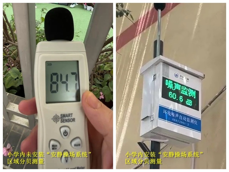 记者注意到,浣花小学靠近居民楼的长廊旁边墙壁上还装了一台噪声监测仪,屏幕上动态显示着声音分贝,当时的数据在60一70分贝波动。“60—70分贝的声音类似于在繁华市区行走时听到的嘈杂声,或者相当于大声说话的声音。”杨明杰说。