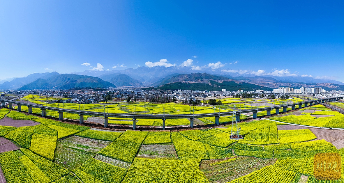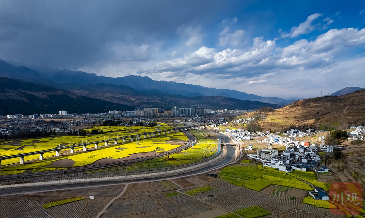 每到春天,越西县城郊的油菜花海便成为游客热衷的打卡胜地。