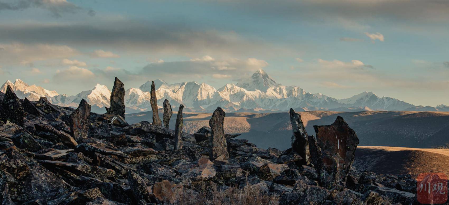 黑石城上眺望“蜀山之王”贡嘎雪山。