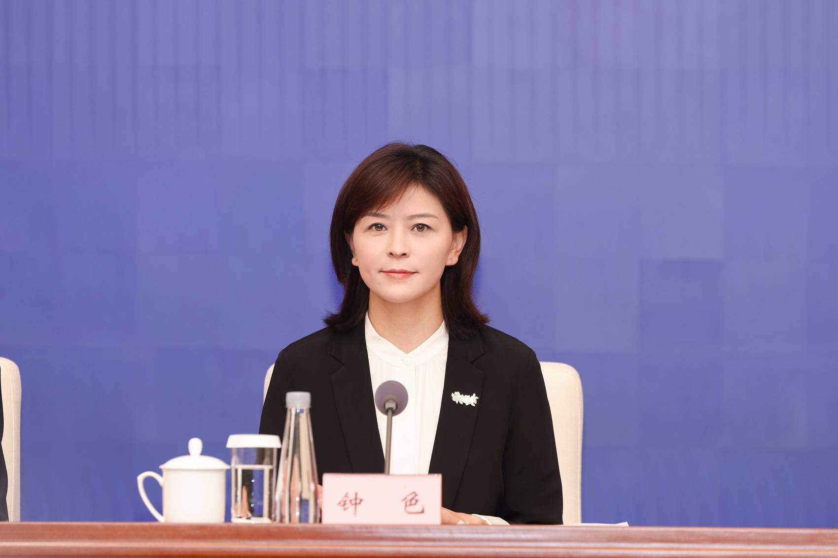 雅江县委副书记、县长钟色回答记者提问。(洛绒尼玛 摄)