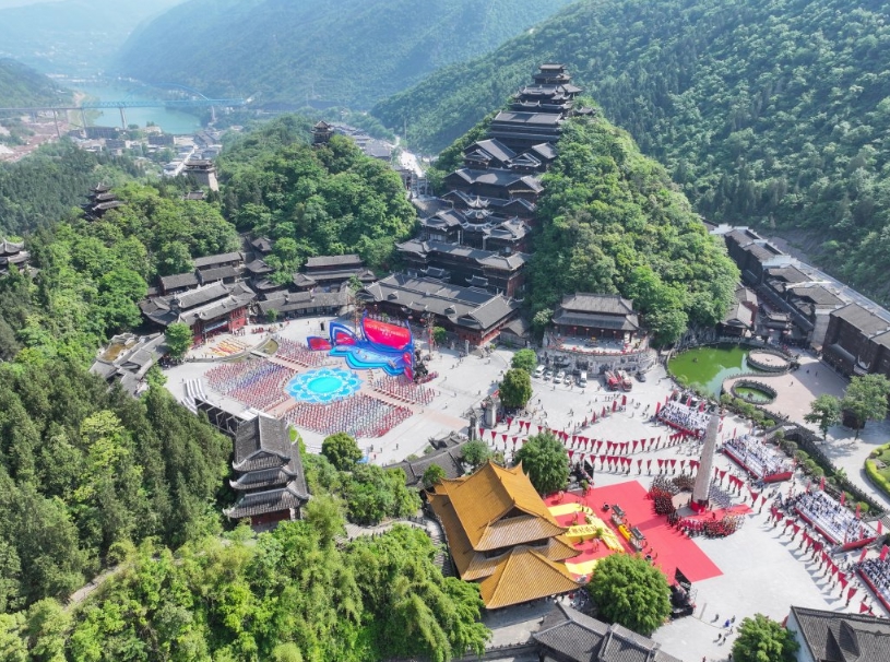 当日,第十四届乌江苗族踩花山节在重庆市彭水苗族土家族自治县的蚩尤九黎城启幕。来自全国各地的游客和穿着节日盛装的苗乡儿女,同唱娇阿依、共舞踩花山,一起欢庆苗族的传统节日。