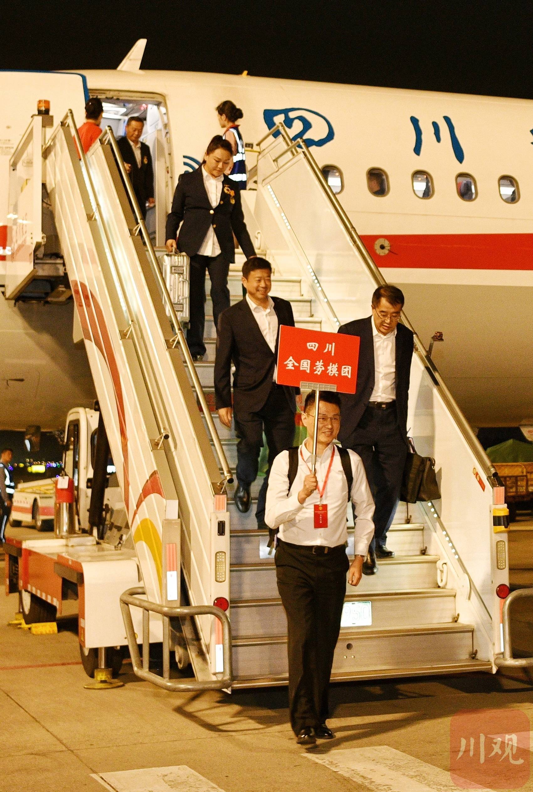 4月28日晚8时许,川航3U8888次航班平安落地,佩戴绶带、胸挂奖章的四川儿女载誉而归。