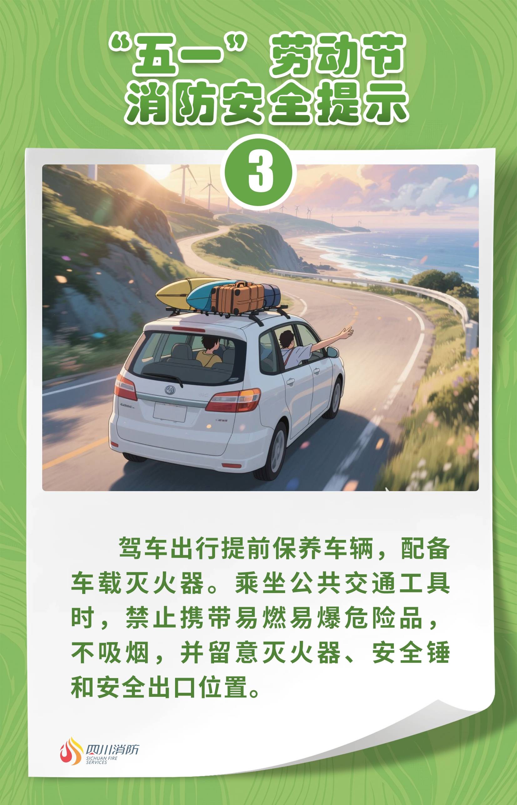据四川省消防救援总队统计,近三年“五一”假期四川省日均火灾较非节假日时段偏高19.3%,娱乐场所、宾馆、餐饮场所火灾分别较非节假日时段偏高34.9%、29.8%和14.2%。为了您和家人的平安,这六点消防安全提醒请查收。