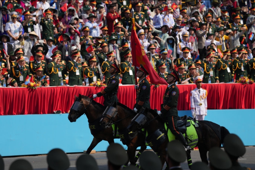 这是4月30日在越南胡志明市拍摄的骑兵队列。新华社记者 胡佳丽 摄