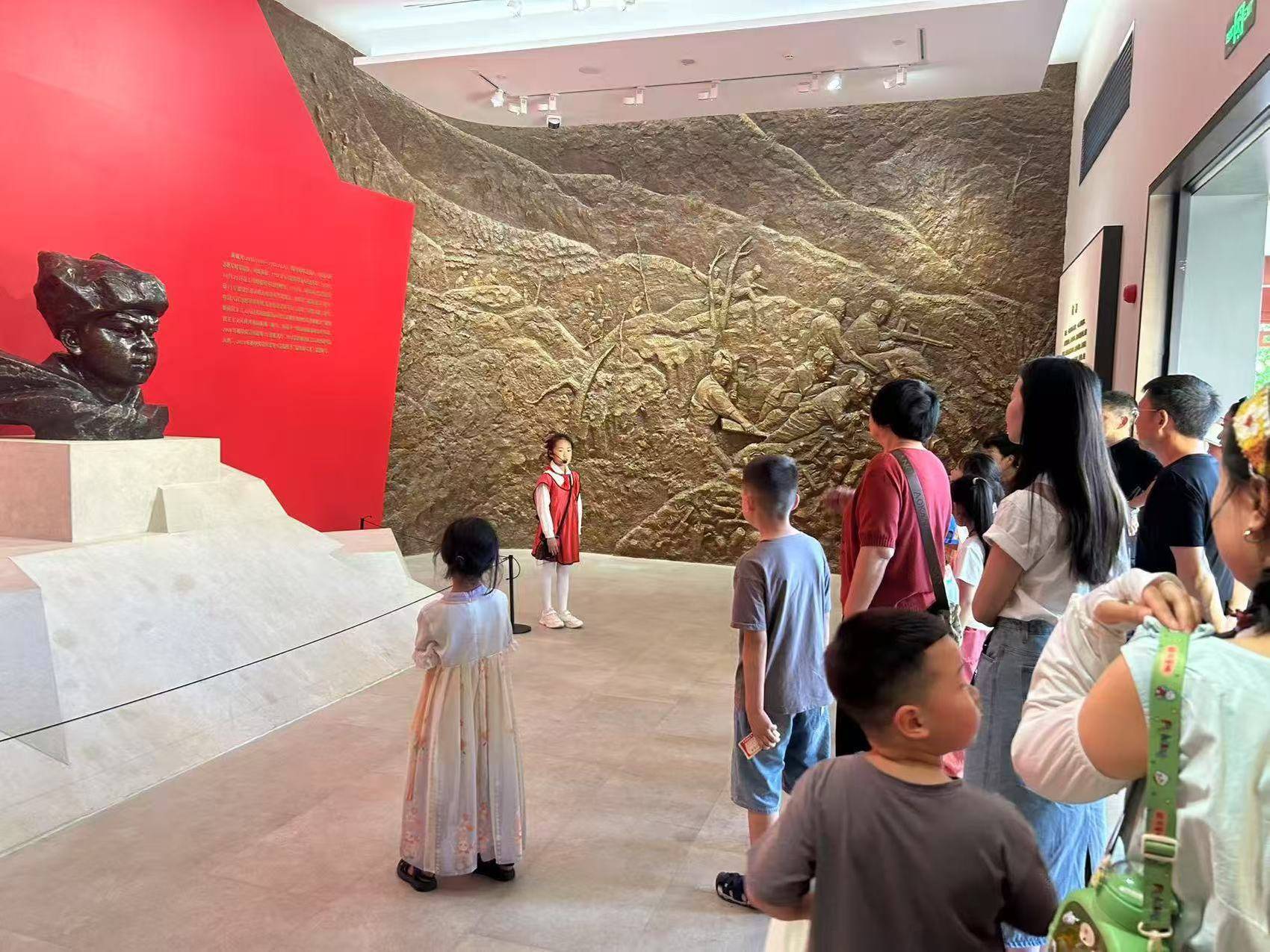 黄继光纪念馆通过开展红领巾宣讲员义务讲解,播放红色电影、舞台剧等方式,吸引了大量游客前来打卡,1日接待观众超6000人次。“未成年观众可免费领取黄继光主题纪念便利贴、英雄事迹连环画册,小朋友们很喜欢。”纪念馆工作人员介绍,1日当天播放电影《特级英雄黄继光》、舞台剧《梨树下立家规》8场,发送《黄继光》连环画册200余本。