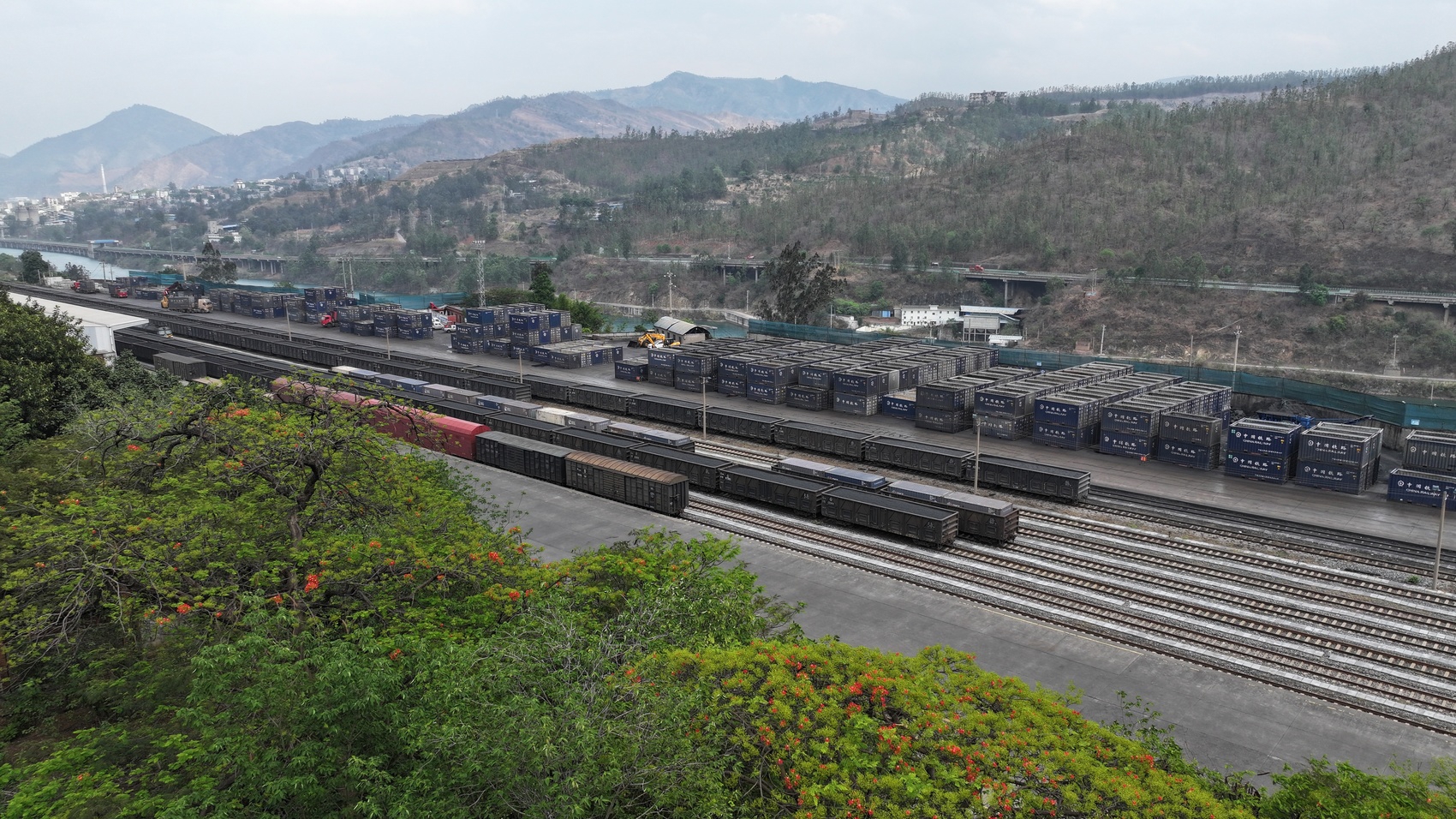 5月4日,汽笛划破天际,一辆满载92个集装箱的列车缓缓驶入攀枝花市西区格里坪镇。集装箱装着近3000吨来自缅甸的铁矿石,通过铁路经瑞丽口岸,到达攀枝花市巴关河站,再由专用铁路线,送抵格里坪镇的新骋物流园区,在这里重新装卸后,分发送往各地的下游企业。