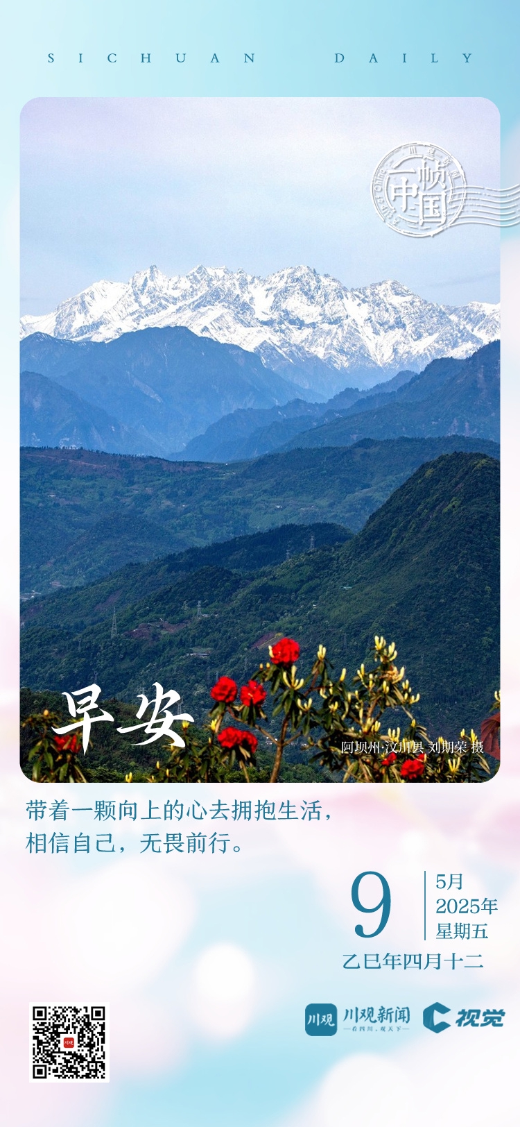 今天的《一帧中国》,川观新闻与你一起来到位于汶川县漩口镇的无忧谷景区,在高山杜鹃花丛中,遥望雪山美景。