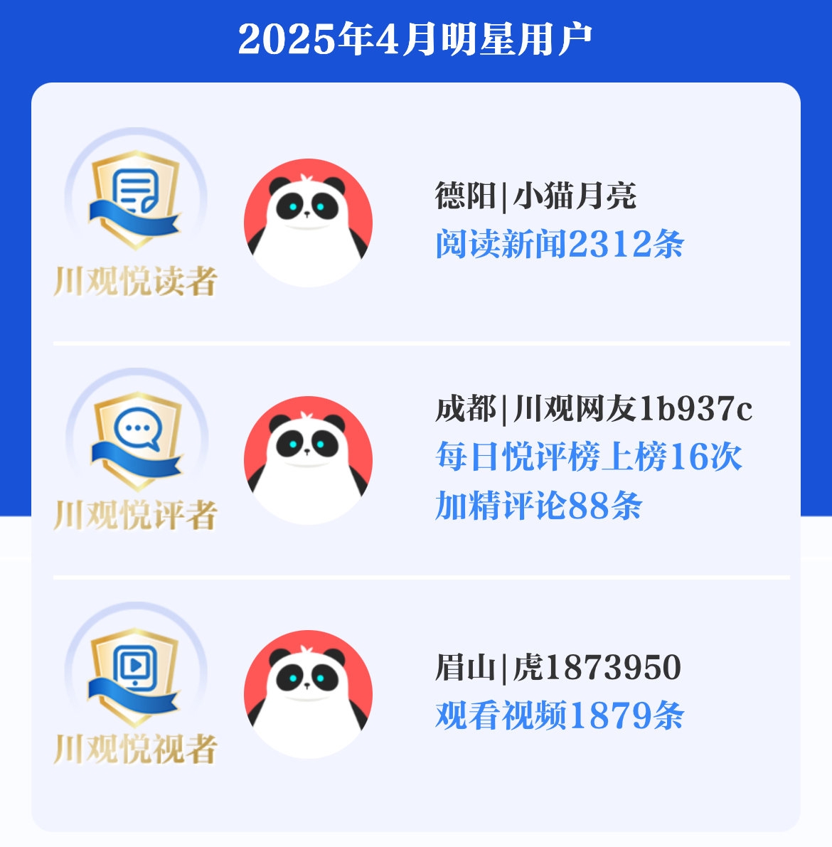 继去年3月上榜之后,自称“不爱被打扰的老张”的川观网友1b937c,再次以“川观悦评者”身份上榜,成为月度明星。作为每日悦评榜优质用户,细心的老张发现:“最近越来越多的小伙伴加入到评论当中来,评论也越来越精彩了。”