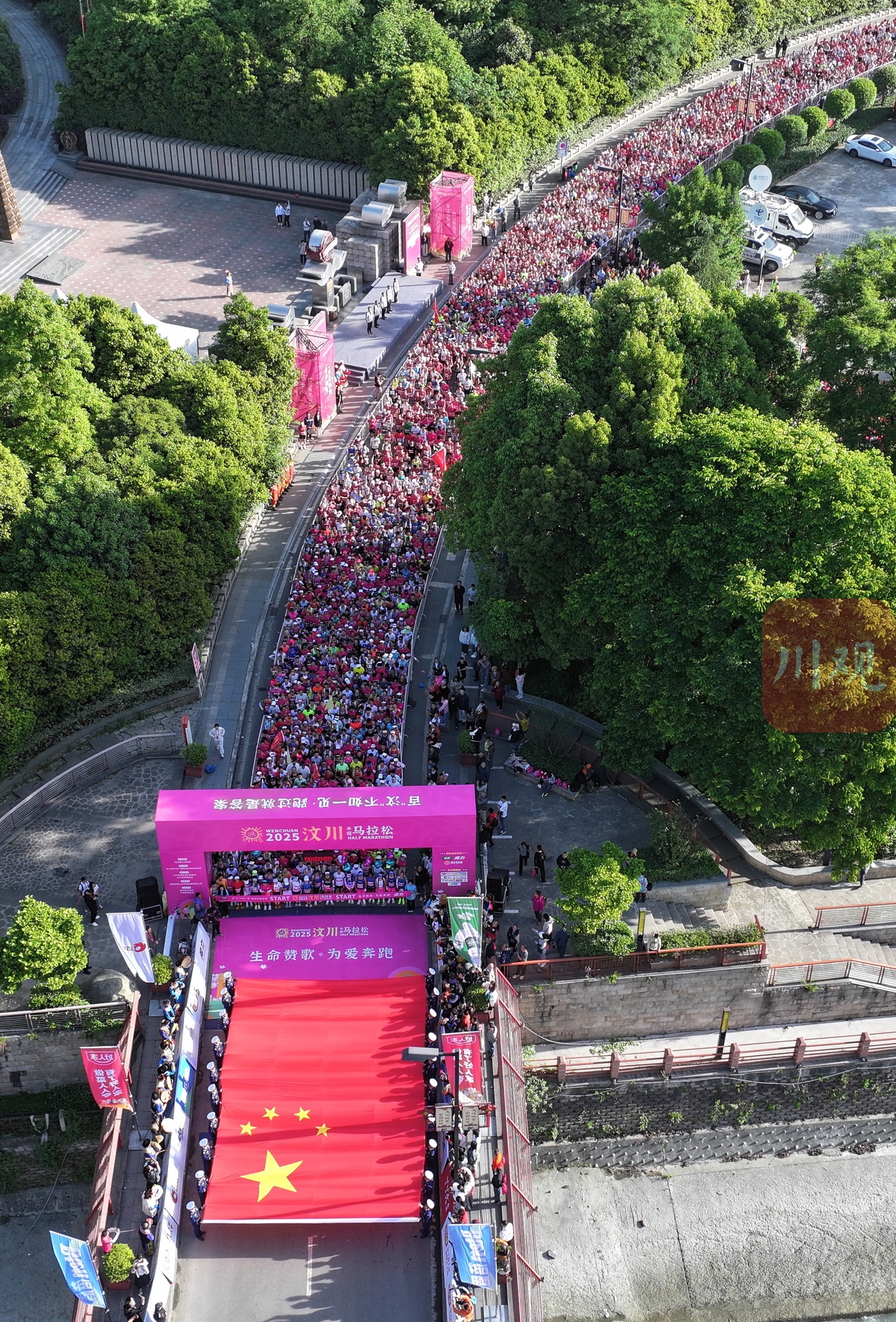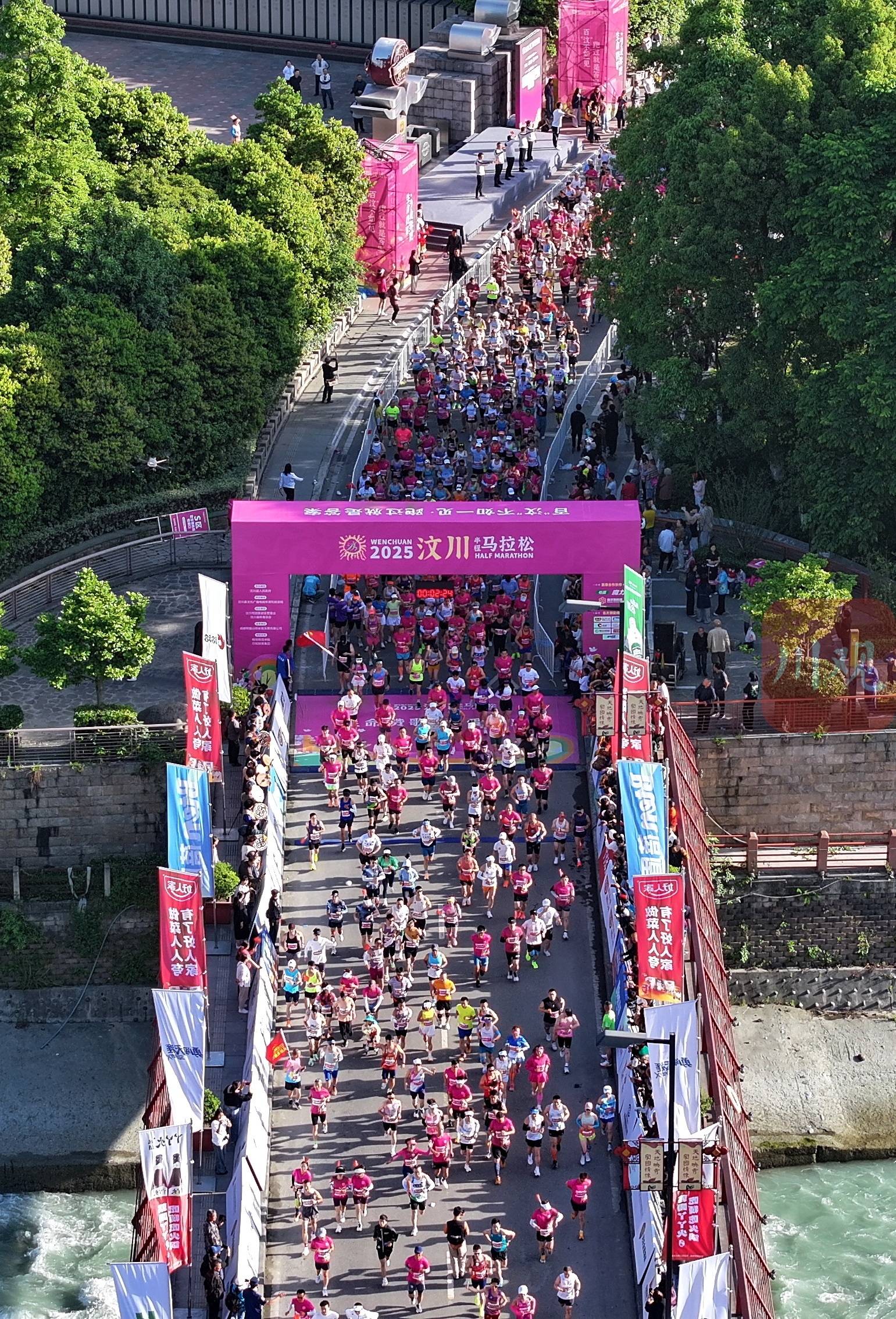 5月11日,“生命礼赞·为爱奔跑”2025汶川半程马拉松赛在汶川县映秀镇鸣枪开跑,吸引了上万名来自全国各地的专业运动员和长跑爱好者积极参与。大家以奔跑之姿致敬生命、传递爱与希望,绘就一幅“体育+文旅+消费”的初夏盛景。