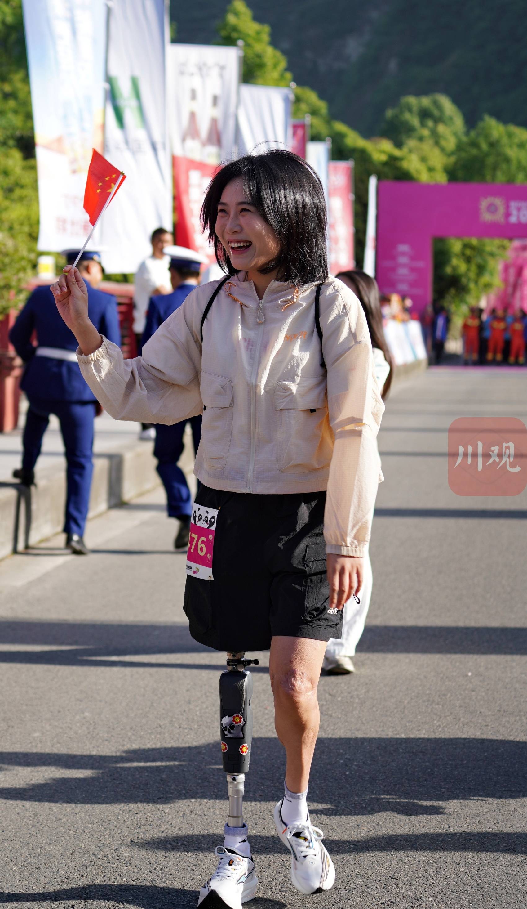 在奔跑的人群中,羌族姑娘牛钰的身影格外引人注目。这位2008年汶川大地震的幸存者,曾被掩埋废墟三天三夜并失去右腿,如今佩戴智能运动假肢参加比赛。她用坚韧步伐诠释生命的顽强,与万名跑者共同将赛事“流量”转化为精神“能量”。