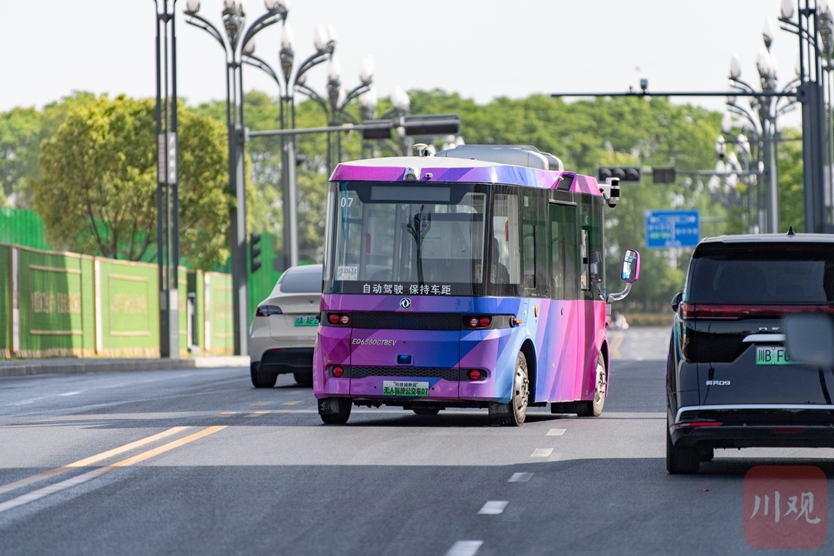 绵阳无人驾驶公交车正在行驶中。摄影/赵明