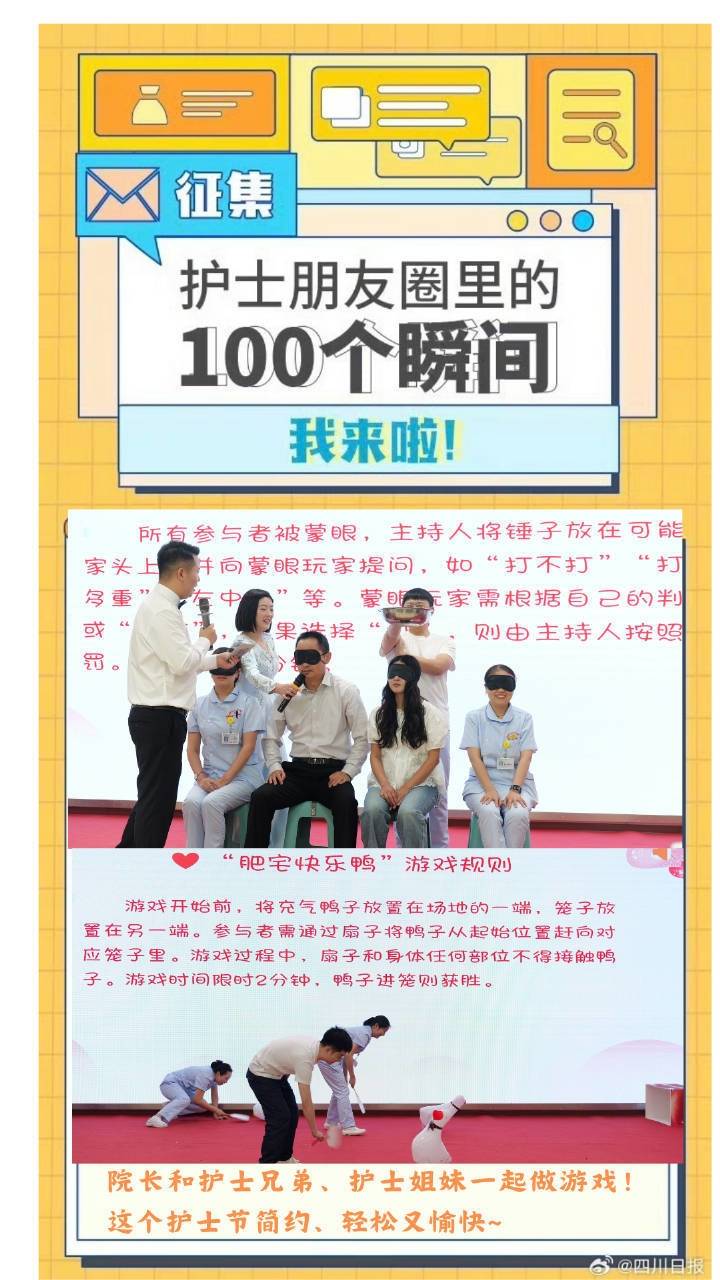 成都市第八人民医院的分享更是趣味十足,画面中院长在护士节活动里被盆子“砸中”,没有隆重的比赛与汇演,大家围坐一起做游戏,将轻松与快乐传递给患者和家属。
