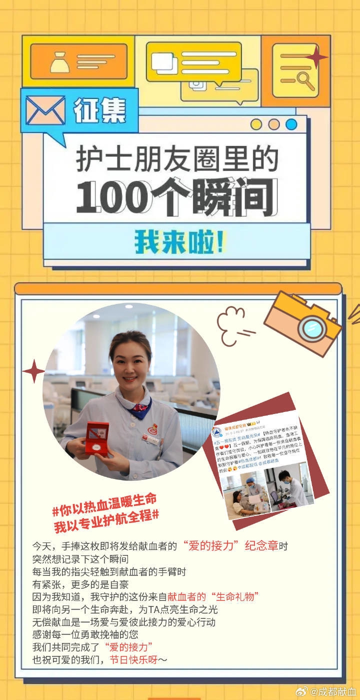 成都市血液中心在5月12日前夕推出“爱的接力”纪念章,护士手捧着它,承载着生命传递的重量。