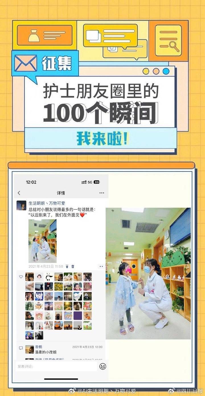 在这个温暖的五月,一场关于白衣天使的线上狂欢来袭!5月9日至11日,@健康四川官微、@四川日报官方微博与川观新闻APP联手,发起#四川护士朋友圈的100个瞬间#话题征集活动,吸引163万人次“云围观”,活动次日登上同城热搜榜第二,上千条评论涌来,掀起一波波互动热潮。