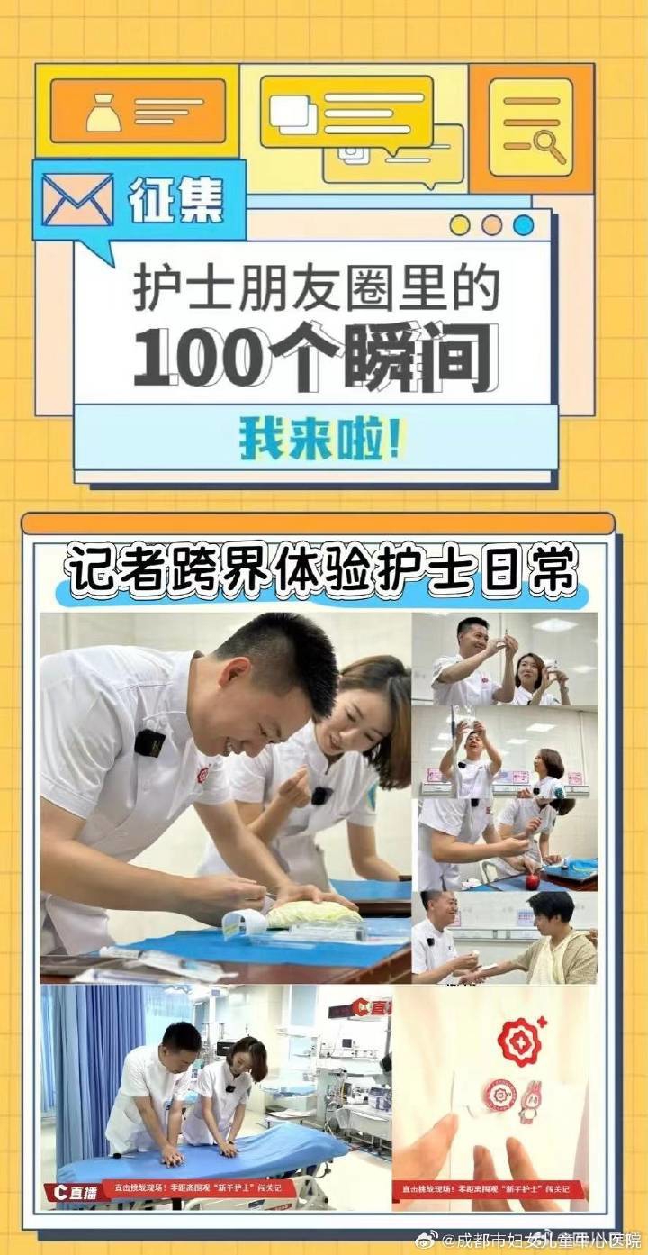 还有川观新闻主播在成都市妇女儿童中心医院的职业体验,亲身体验“输液”“打针”等操作,才知护士们看似轻松的日常,背后是千万次的锤炼。
