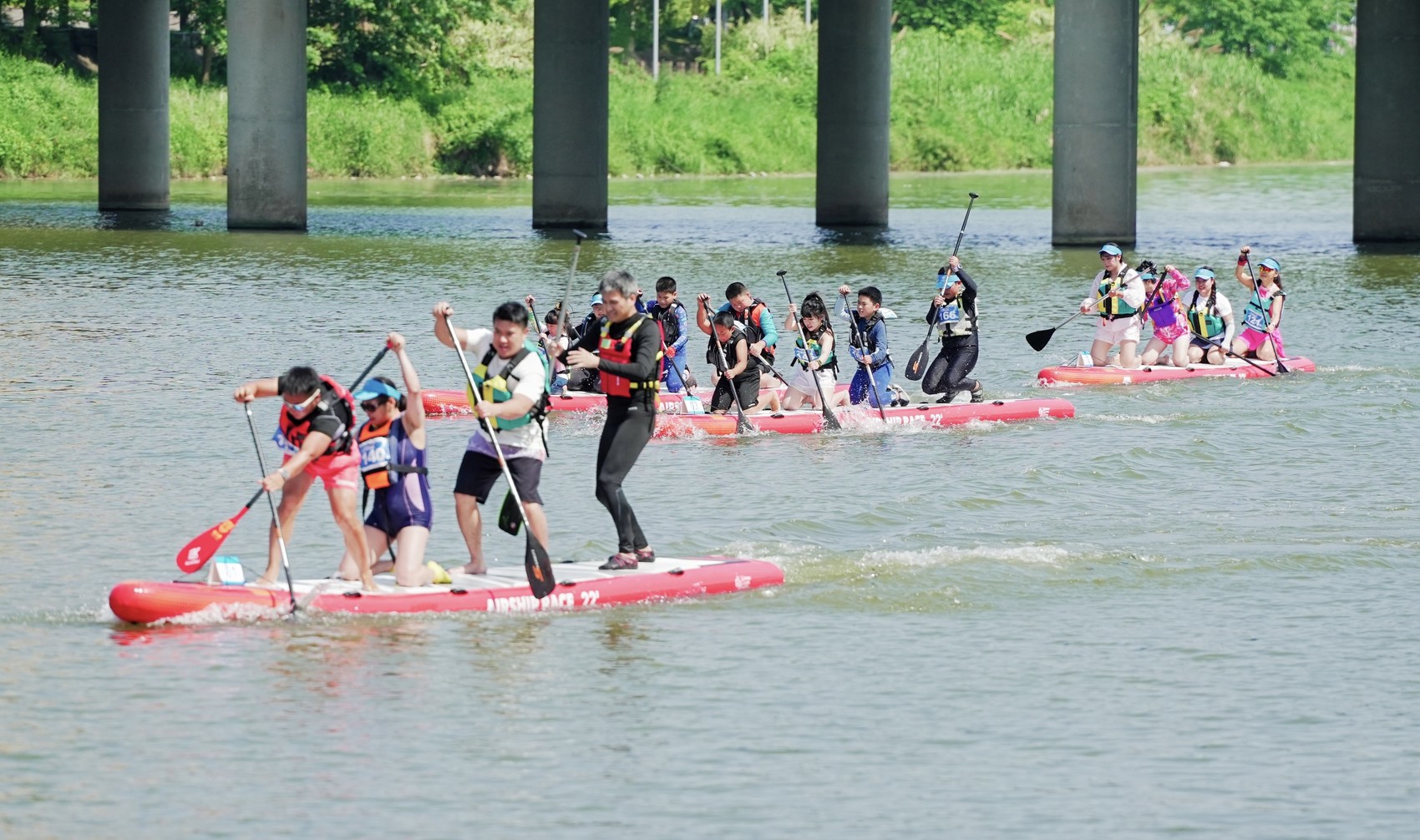 2025年四川桨板城市超级联赛(邛崃站)设专业组、业余组两大类别,涵盖个人赛(200-4000米)、团队四人龙板赛、个人桨板技巧赛、皮划艇亲子赛、水上瑜伽表演五个项目。比赛现场,南河生态河道化身“天然竞技场”,运动员挥桨破浪的身影与两岸迴澜塔影、滨河绿廊交相辉映,市民游客则可在南河步道实时观赛,近距离感受赛事激情。经过激烈角逐,来自泸州的程勇斩获男子大师组4KM赛冠军,来自云南昭通的李超凭借高难度“桨板腾跃接360度旋转”动作摘得技巧赛金牌。崃浪俱乐部队则在团队龙板赛中力压群雄,获得团体第一名的好成绩。