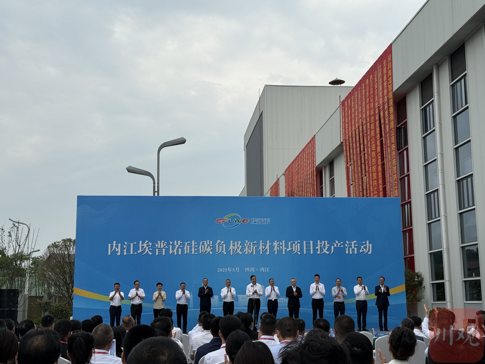 5月13日,内江埃普诺硅碳负极新材料项目在内江经开区投产。当天点火投产的是该项目一期的3条生产线,产能为年产6万吨硅碳负极材料。