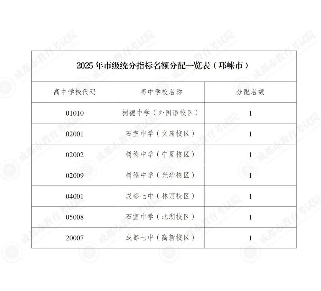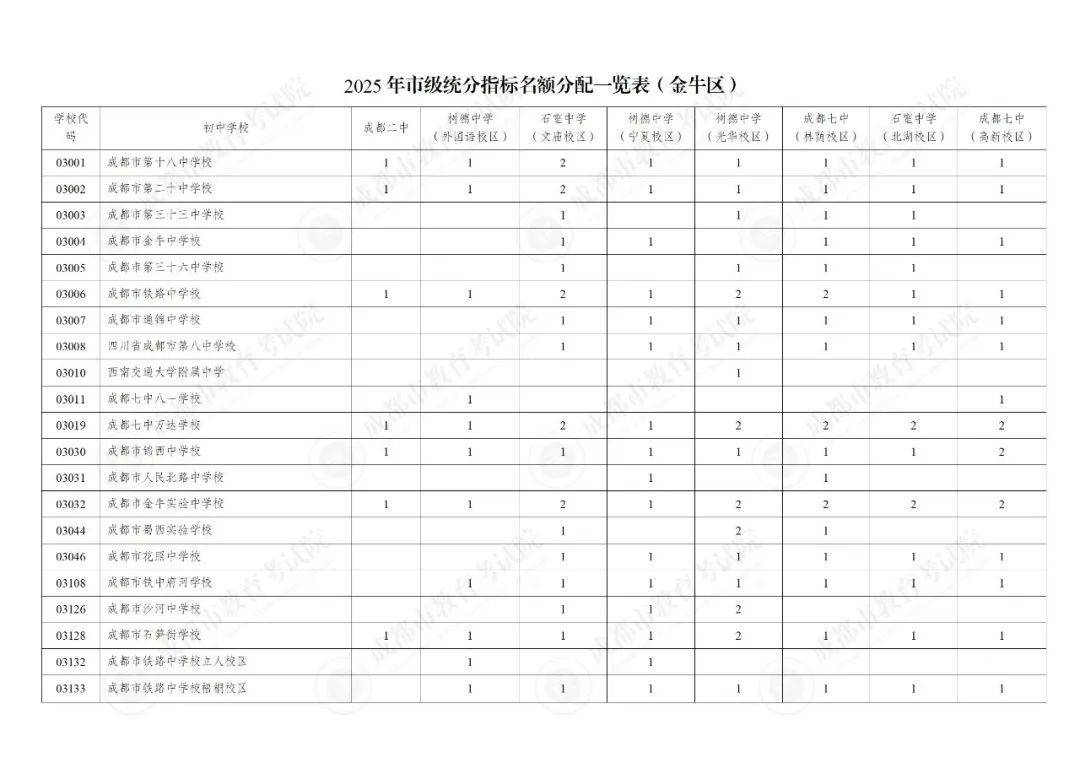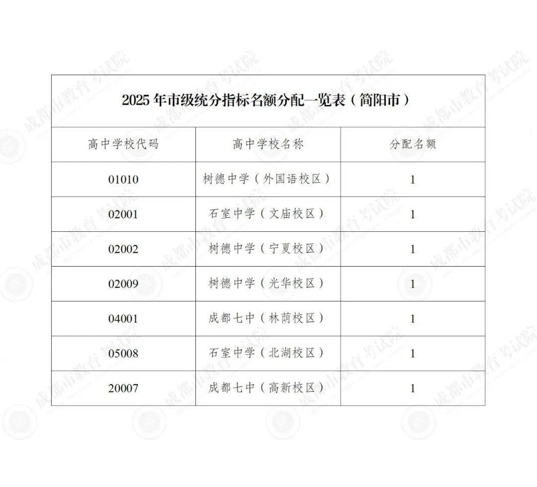 成都市深入落实“双减”政策,推动义务教育优质均衡发展,严格落实《四川省教育厅关于做好2025年普通中小学招生入学工作的通知》关于“严格落实省级示范性普通高中招生指标合理分配到区域内初中的政策,确保分配比例不低于50%。市(州)直属省级示范性普通高中可面向市域内初中分配指标,其他省级示范性普通高中应面向县(市、区)域内初中分配指标”的要求。