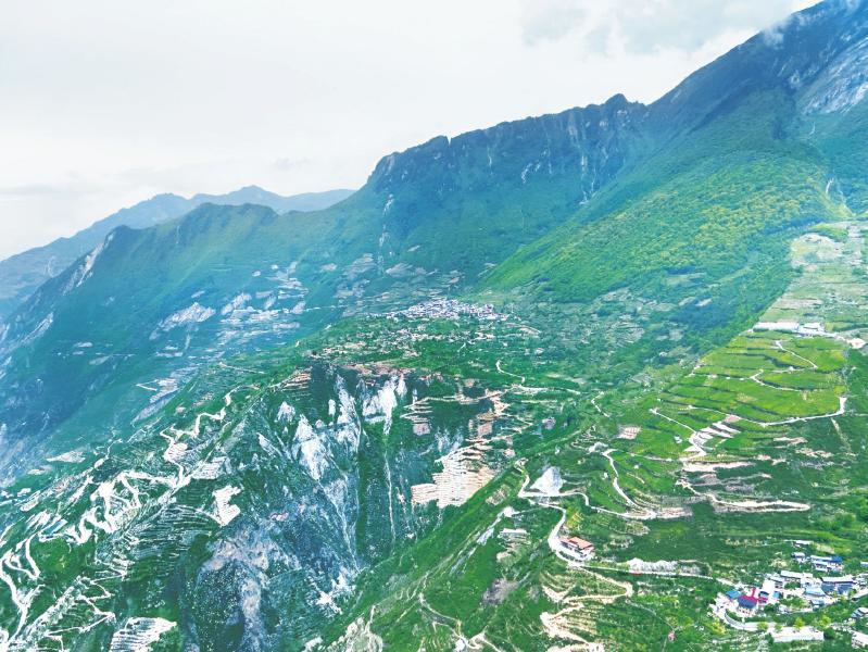 无人机拍摄的汶川县萝卜寨。