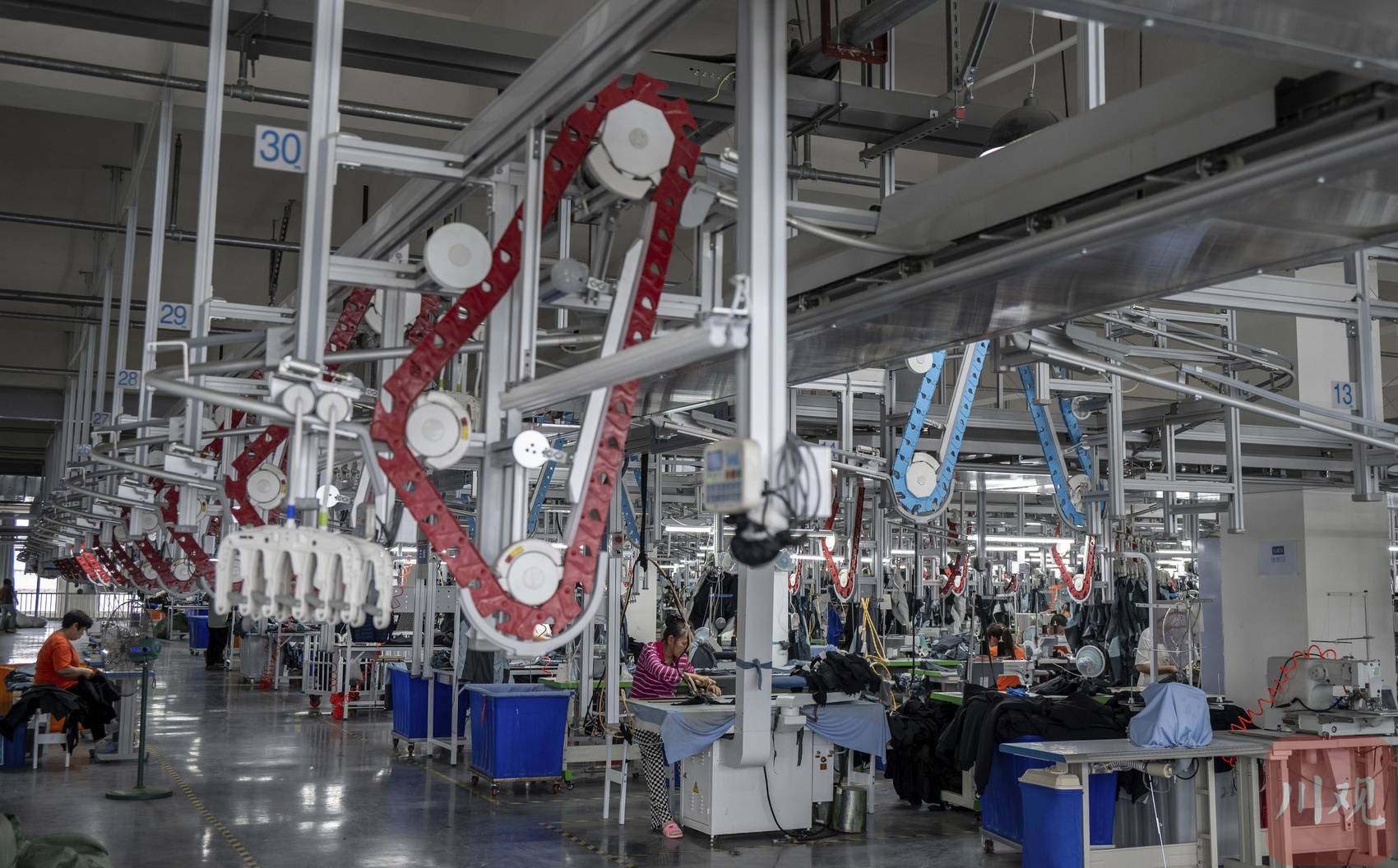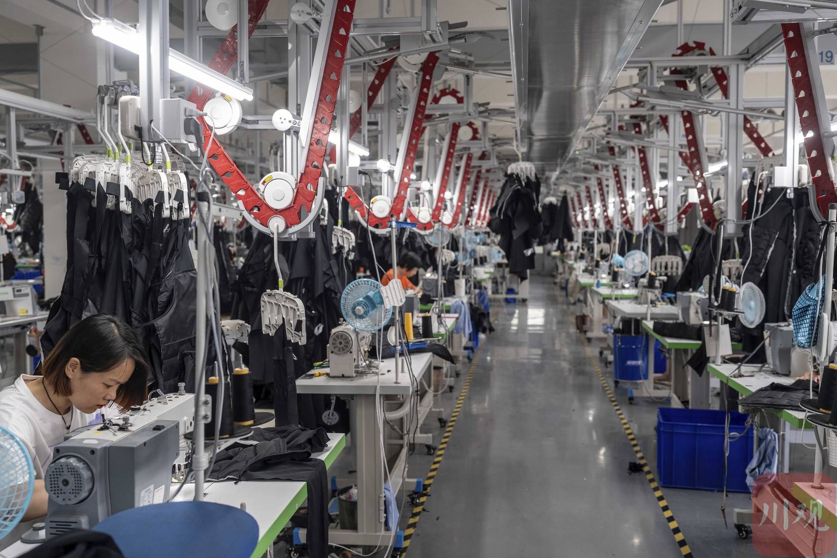 5月15日,走进位于广安市前锋工业园区的广安沐琳制衣有限公司车间,工人们正专注于成衣产品的熨烫、整型与包装。这批涵盖运动夹克、冲锋衣、长裤的服饰即将下线,发往国外市场。作为园区内智能生产的标杆企业,公司引入当下先进的智能自动化生产线,可根据客户多元化需求,精准生产各类运动休闲服饰,展现出“柔性智造”的强大适配能力。
