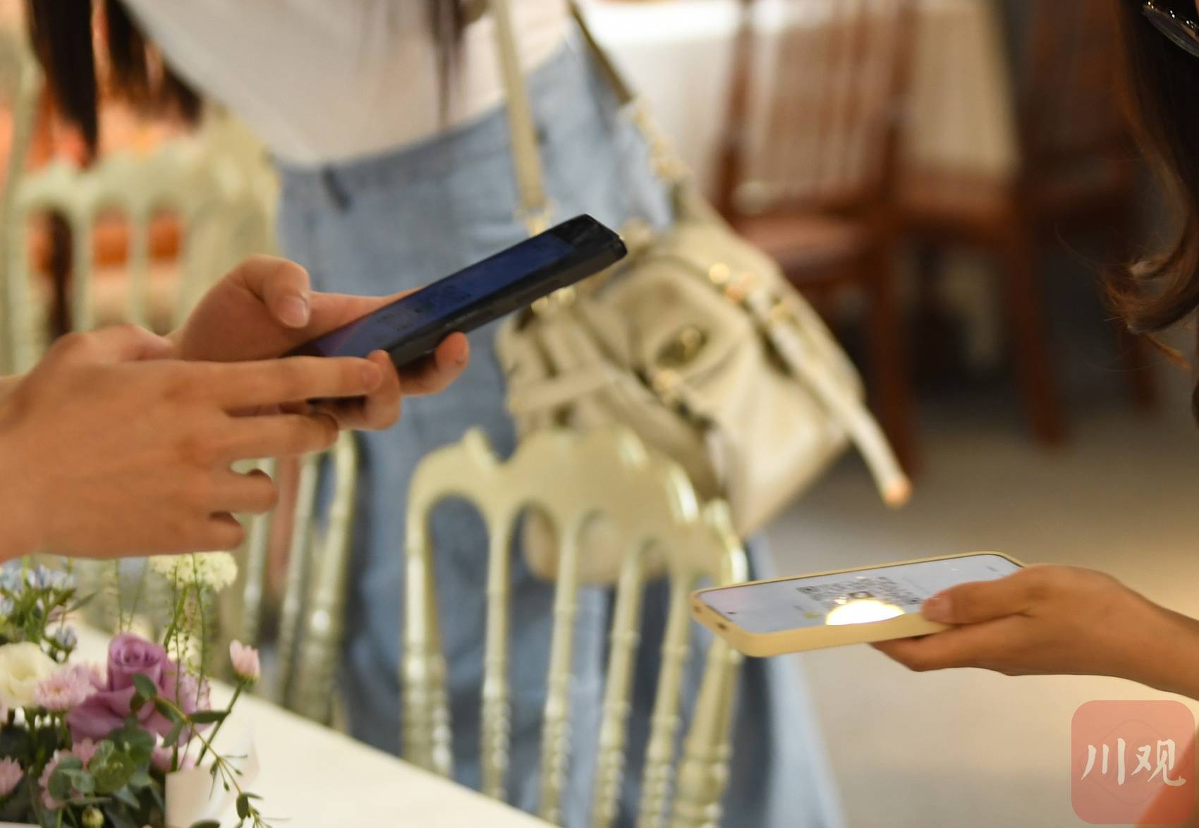 2025年5月16日,在四川省彭州市白鹿镇活动现场,青年职工互相加微信。