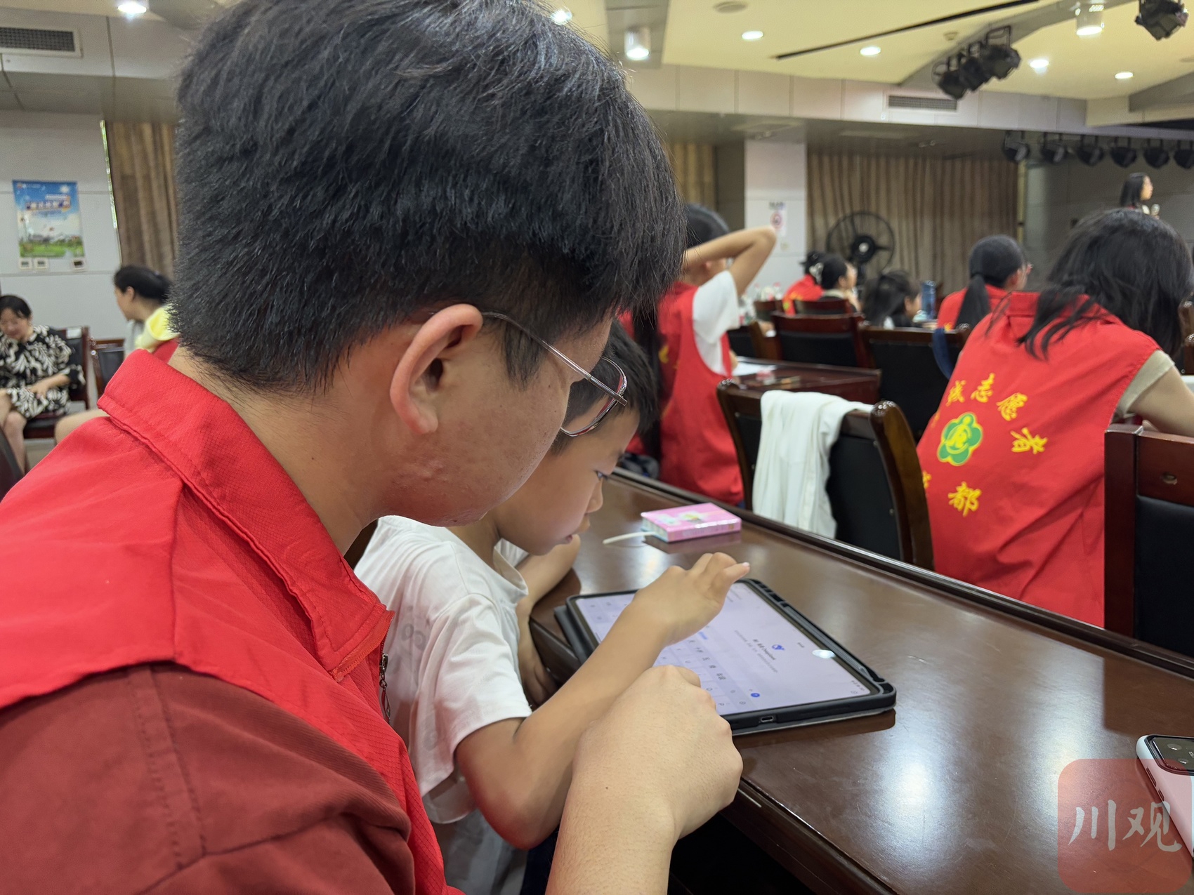 高校志愿者团队为听障家庭的正常儿童设计了“和AI做朋友——聪明使用小助手”等趣味课程,通过智能语音助手、AI搜索工具等生活化载体,点燃他们对AI科技的认知与热情。随后采用“2对1”陪伴式辅导,并建立线上辅导模式,四川大学法学院大一新生刘靖瑜和一位初三学生“结对”,“这位小朋友的父亲是听障人士,我之前每周通过线上辅导一次,今天有机会线下沟通,感觉到她的进步很大。”刘靖瑜说。